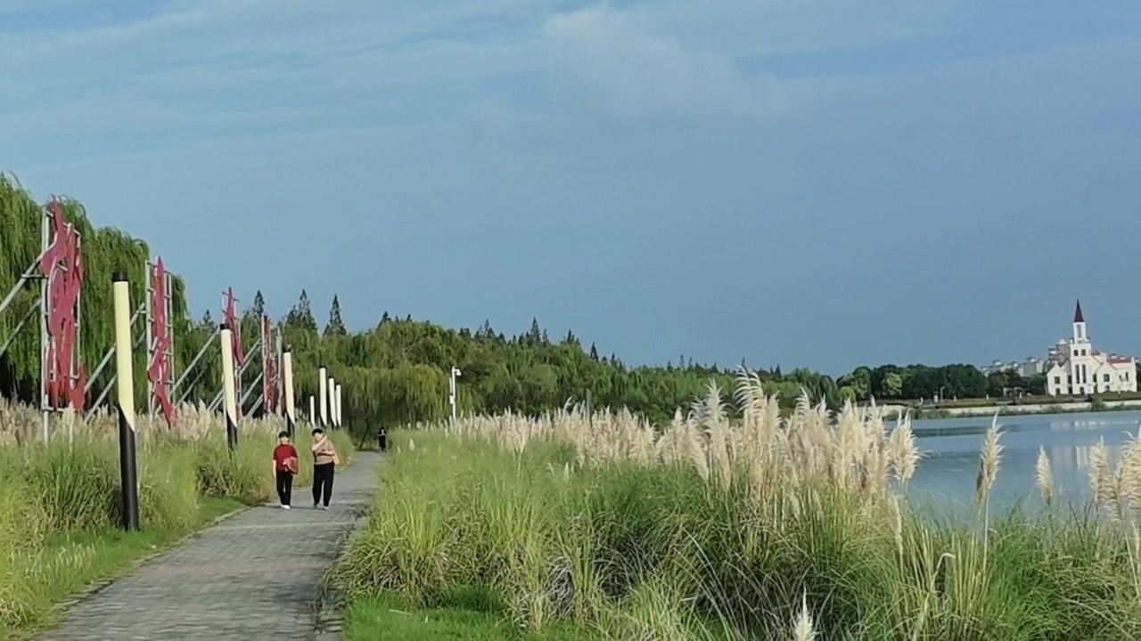 沿着环湖步道走,能看到钓鱼的人静静坐在岸边,偶尔有野鸭游过,荡起一圈圈涟漪。远处的亭子倒映在水里,和天上的云连在一起,分不清哪里是天哪里是水。