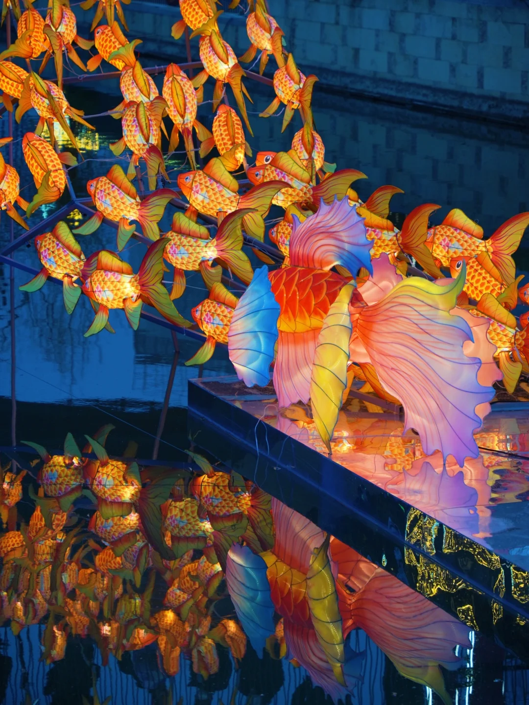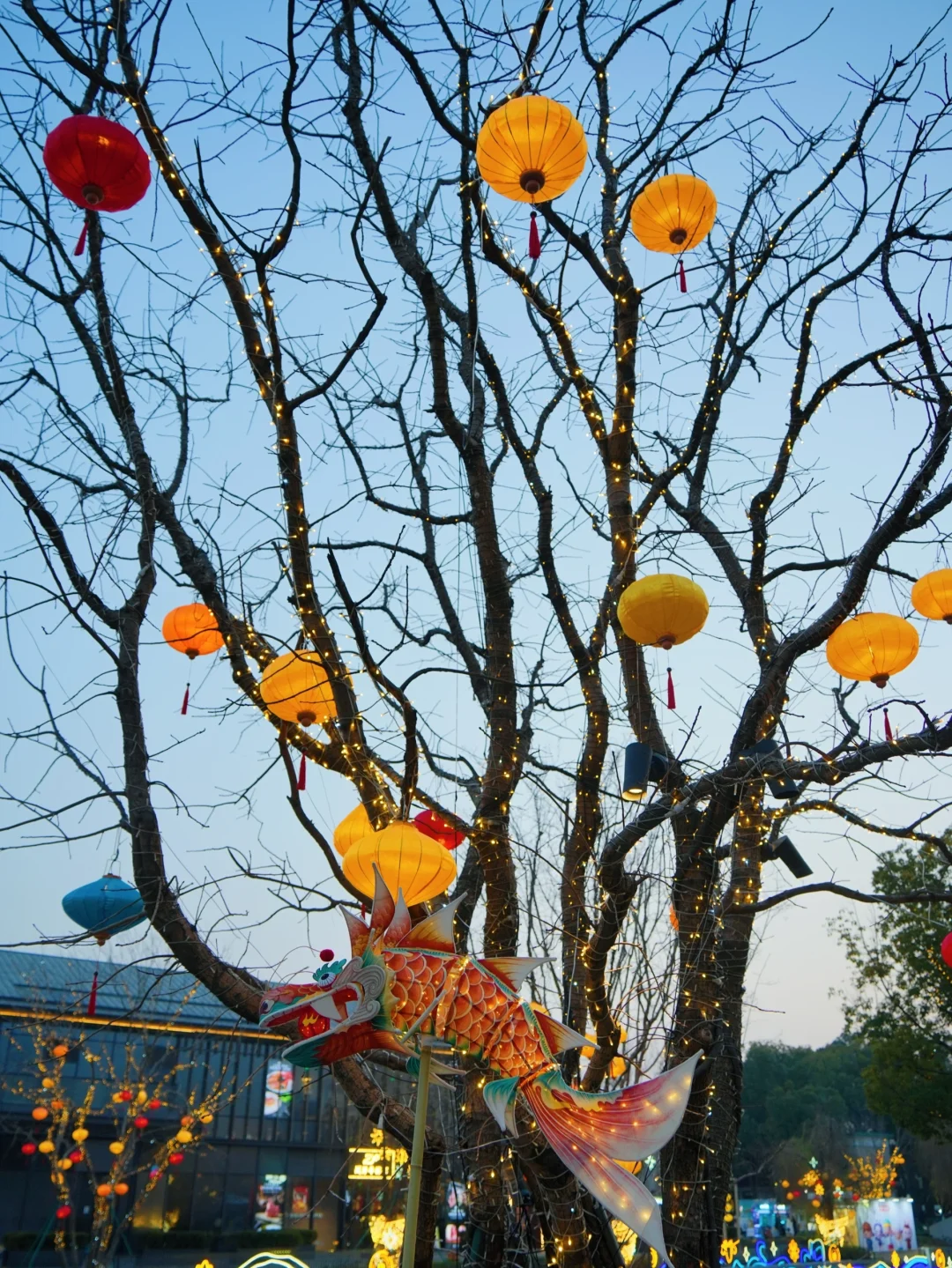 ❺灯笼树:河的两侧都是挂满灯笼的树,蓝调时候拍照很好看!