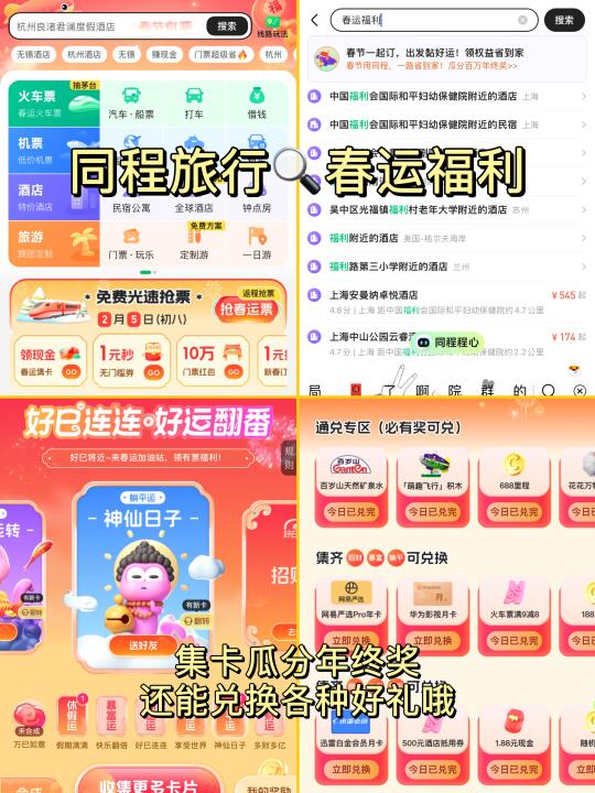 这个春节有出行需求的宝子,不要错过同程旅行的羊毛,APP首页搜【春运福利】,里面活动很多,我给大家筛选了3个必薅的