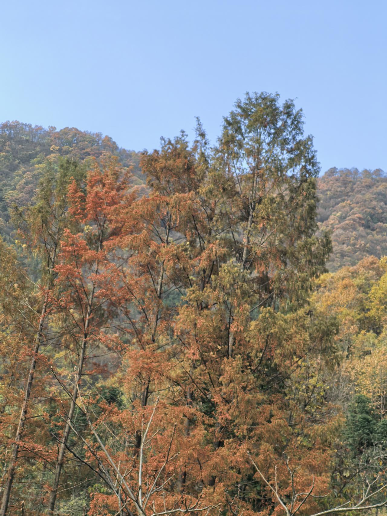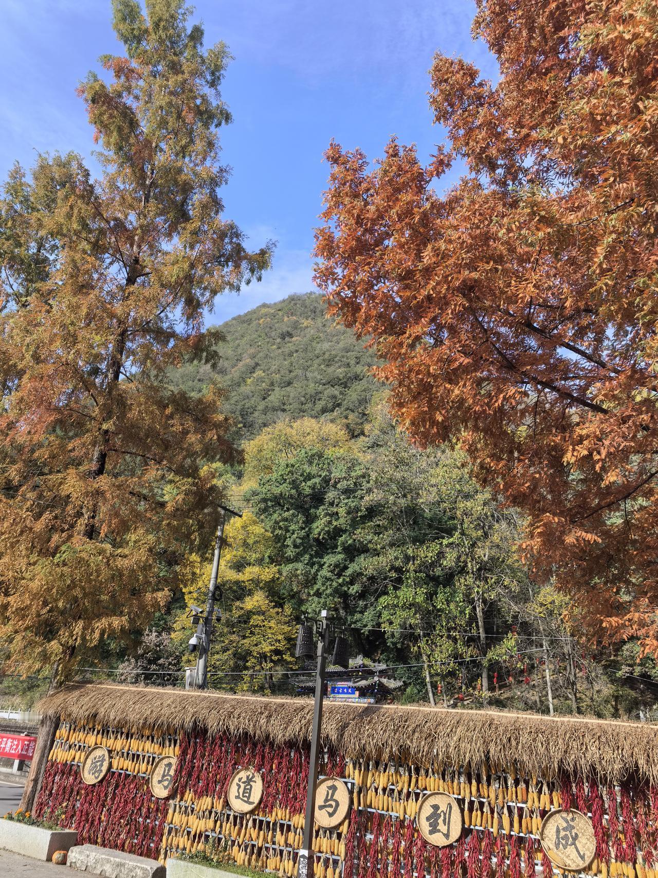 秦岭的秋色。五彩斑斓,到处都是醉人的韵味,金灿灿的玉米,像火一样红的辣椒和柿子,