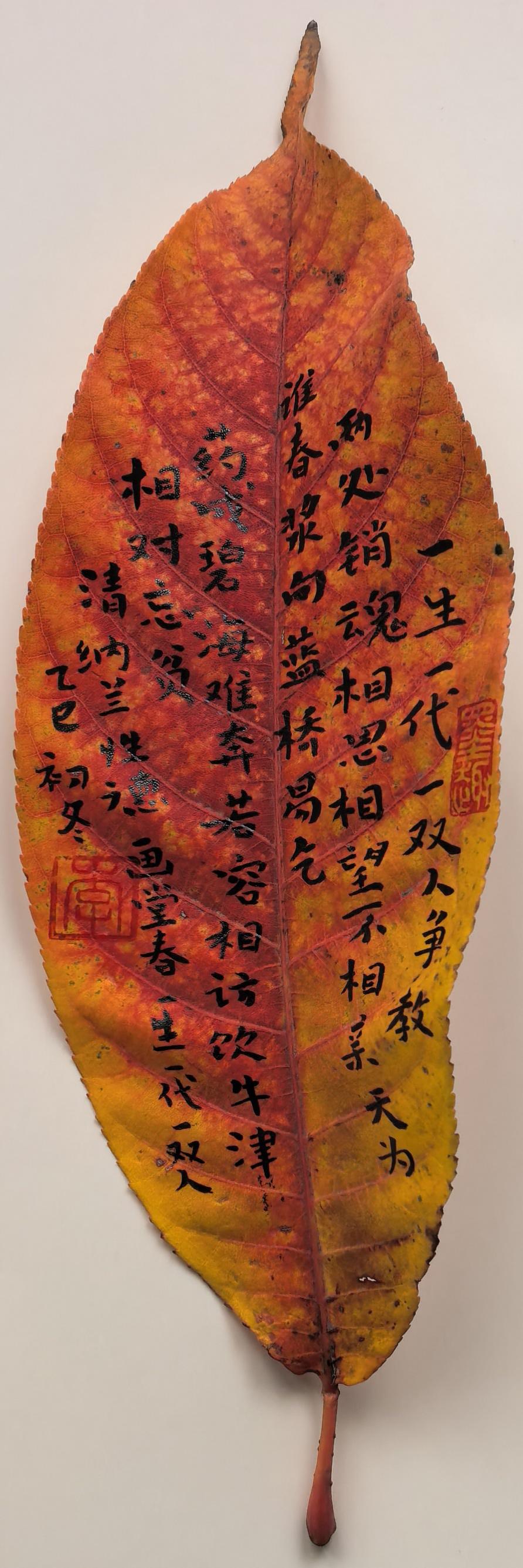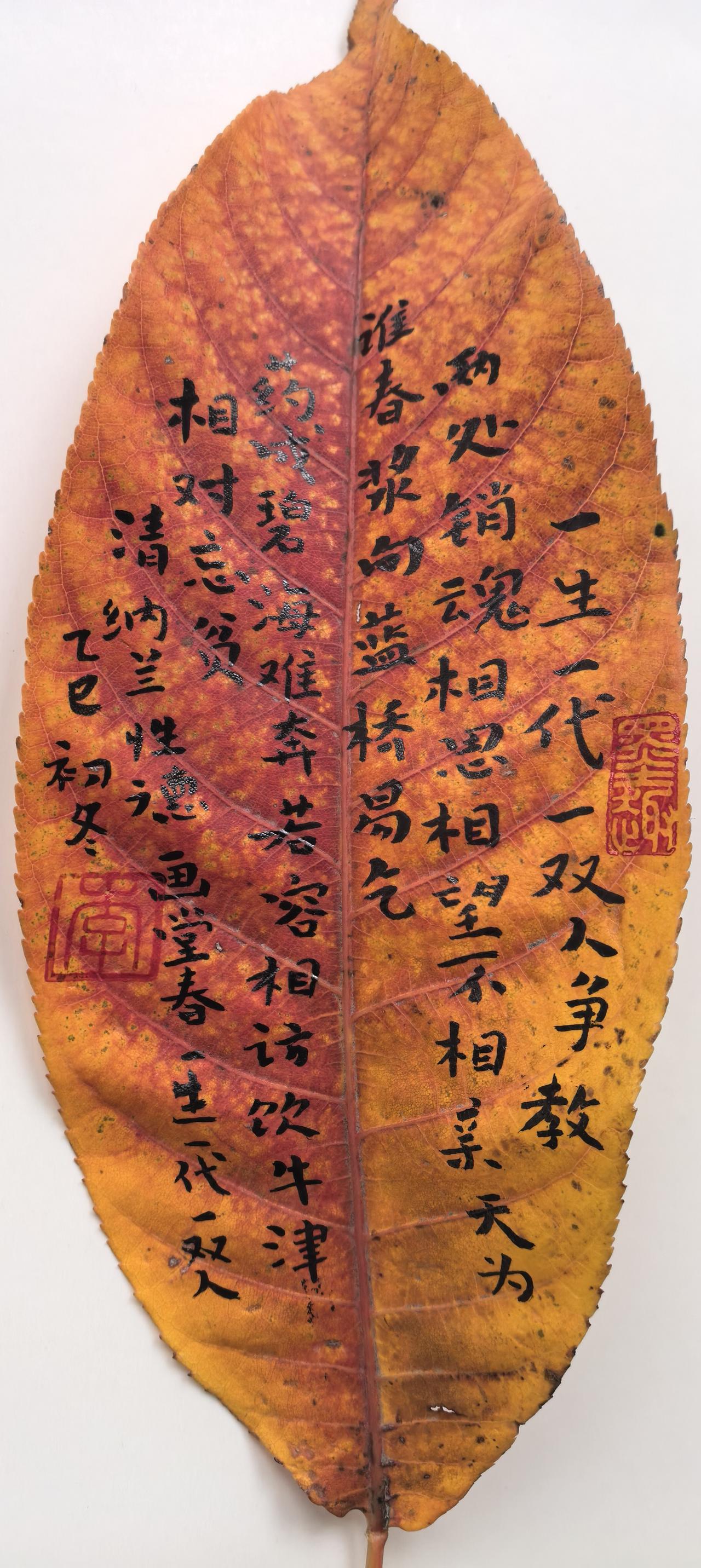 晚秋初冬的树叶,褪去了碧绿的戎装,换成了五彩斑斓的记忆!刚捡了几片树叶,随手写了纳兰的一首词。