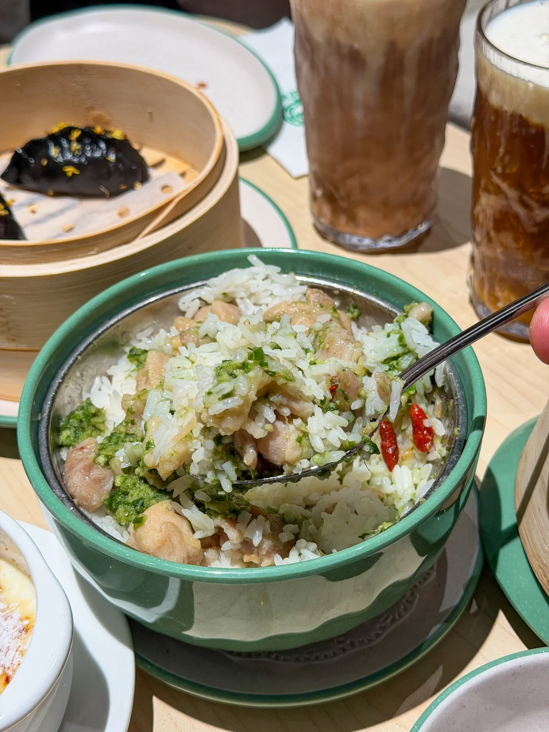 我还试了两道新品:葱油鸡饭 和 牛油果炸虾饺,意外惊艳!尤其虾饺搭配牛油果慕斯,清新又不腻~😋