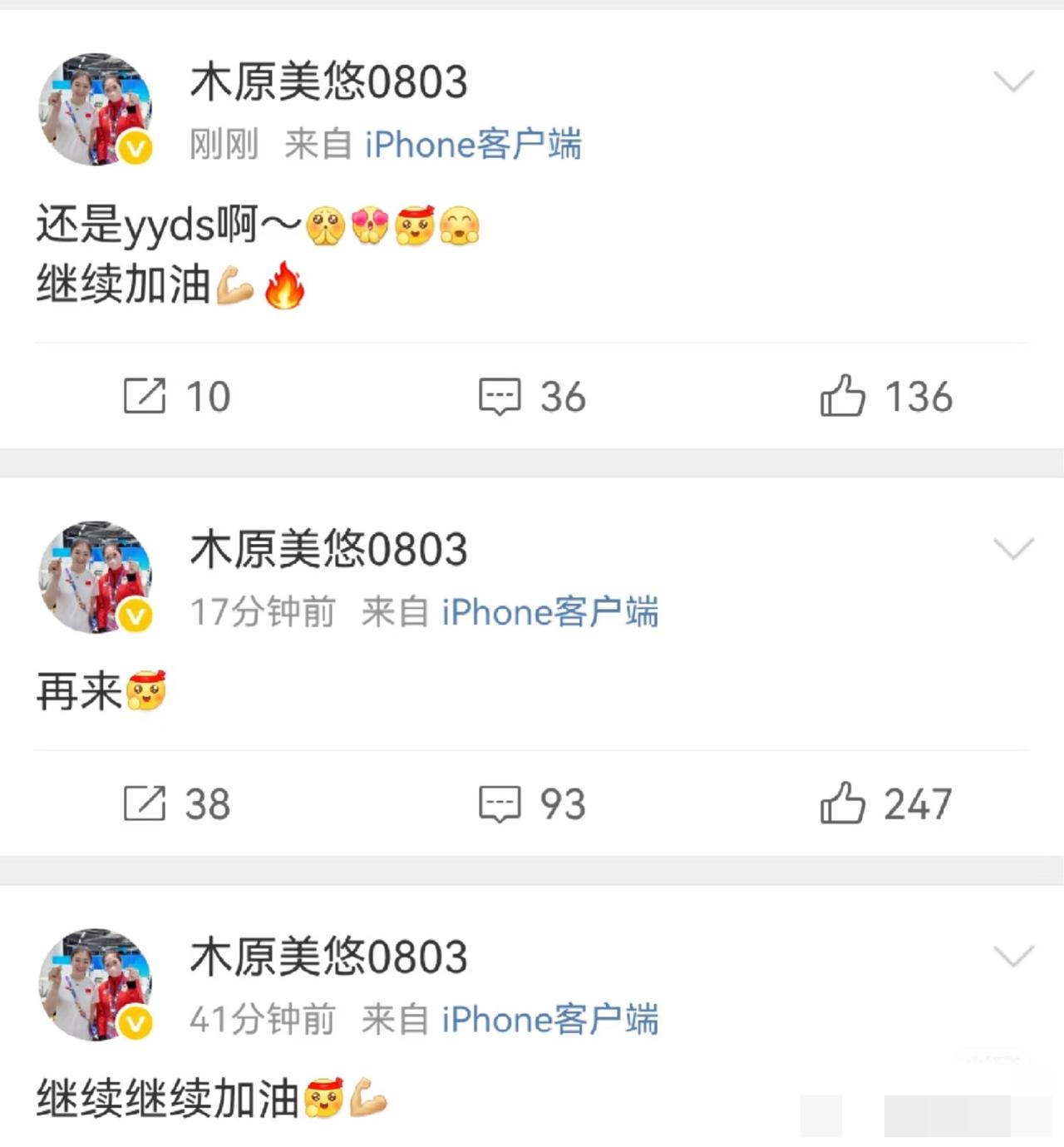 木原美悠一直在看全运会——给陈梦加油 木原美悠的偶像是陈梦, 她在太原的一次比赛中谈到, 陈梦的技术,性格特点 都是她的偶像! 这次全运会, 木原美悠一直关注着陈梦的比赛, 三场比赛, 木原美悠都在给陈梦加油, 陈梦首轮比赛4:0孙铭阳, 二轮比赛4:1何卓佳, 三轮让二追四蒯曼, 木原美悠感叹陈梦还是yyds…… 木原是陈梦的真球迷啊……