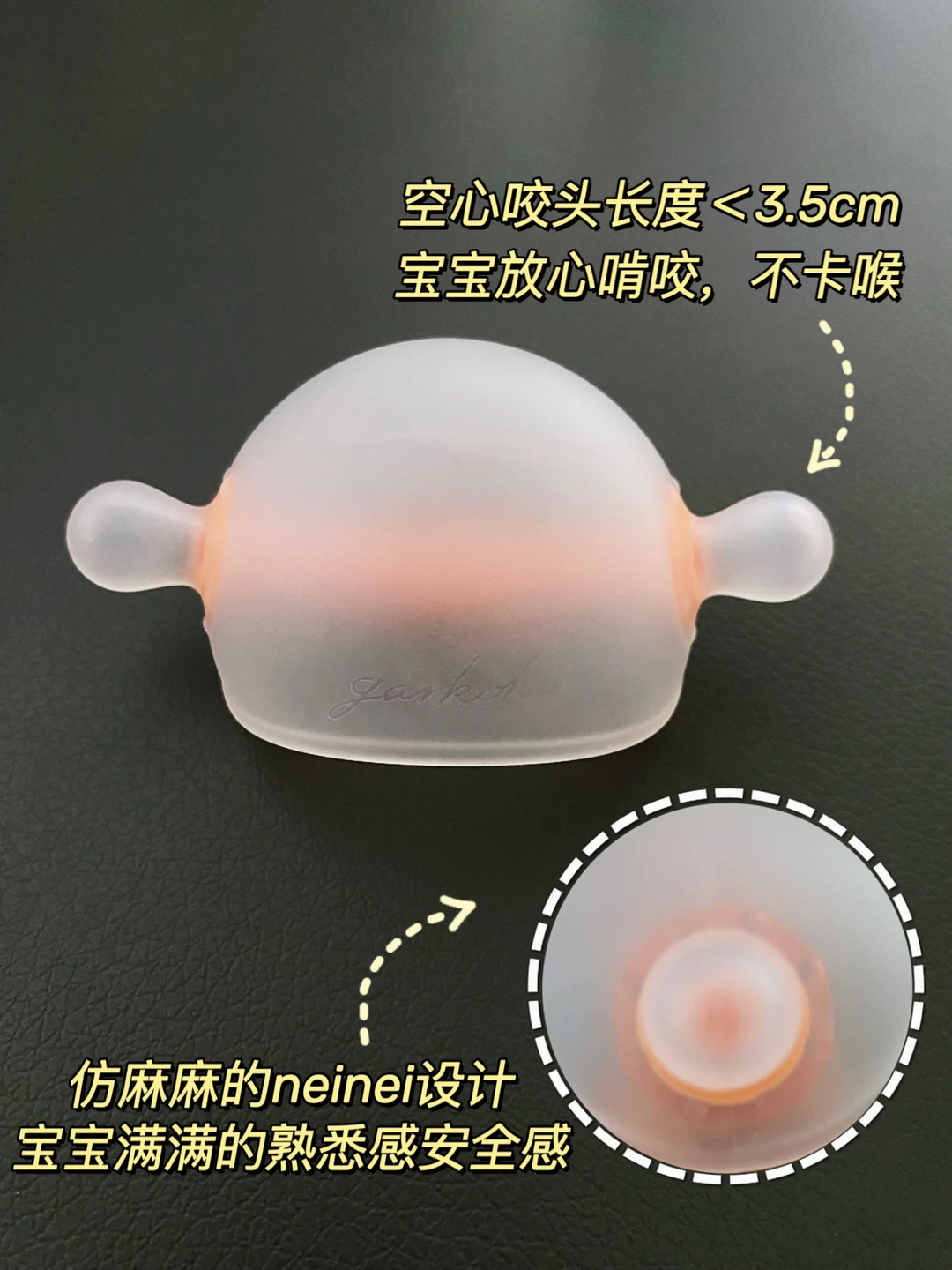 👧我家宝宝用的佳尔优优小头盔牙胶,就像一个小头盔一样半包着宝宝的小手,防止吃手;仿neinei状的空心吸嘴+ru晕设计,宝宝更有熟悉感。横杆的抓握和咬头吮吸符合宝宝握拳吃手的习惯,轻松抓握,宝宝很自然就能吮吸到咬头。