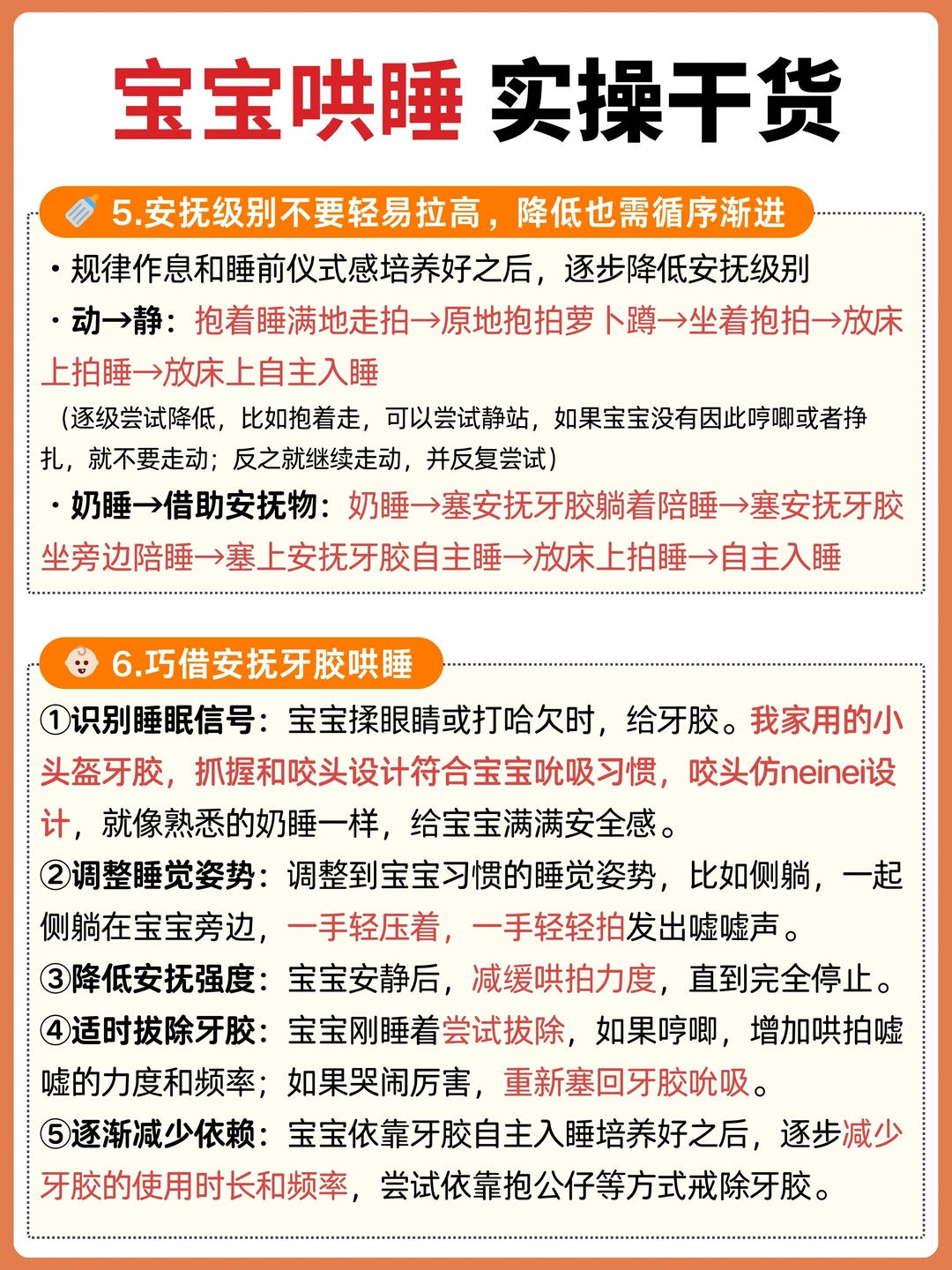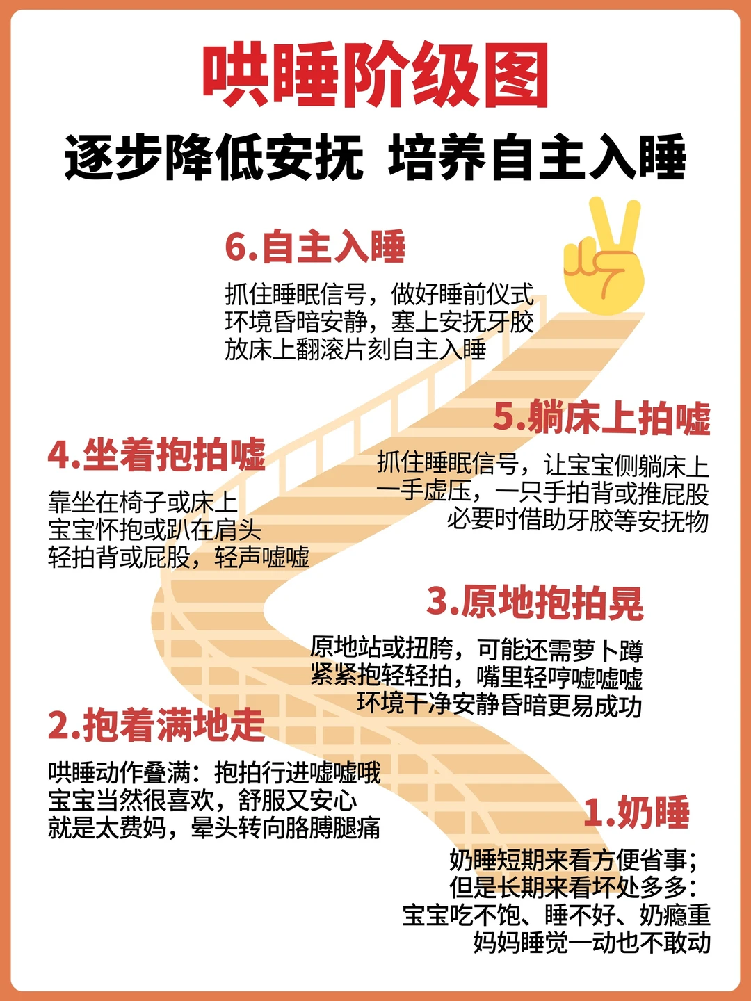 如果已经拉高,一定要循序渐进降下去,逐步从动到静,从有声到静音,最终放床上自主睡
