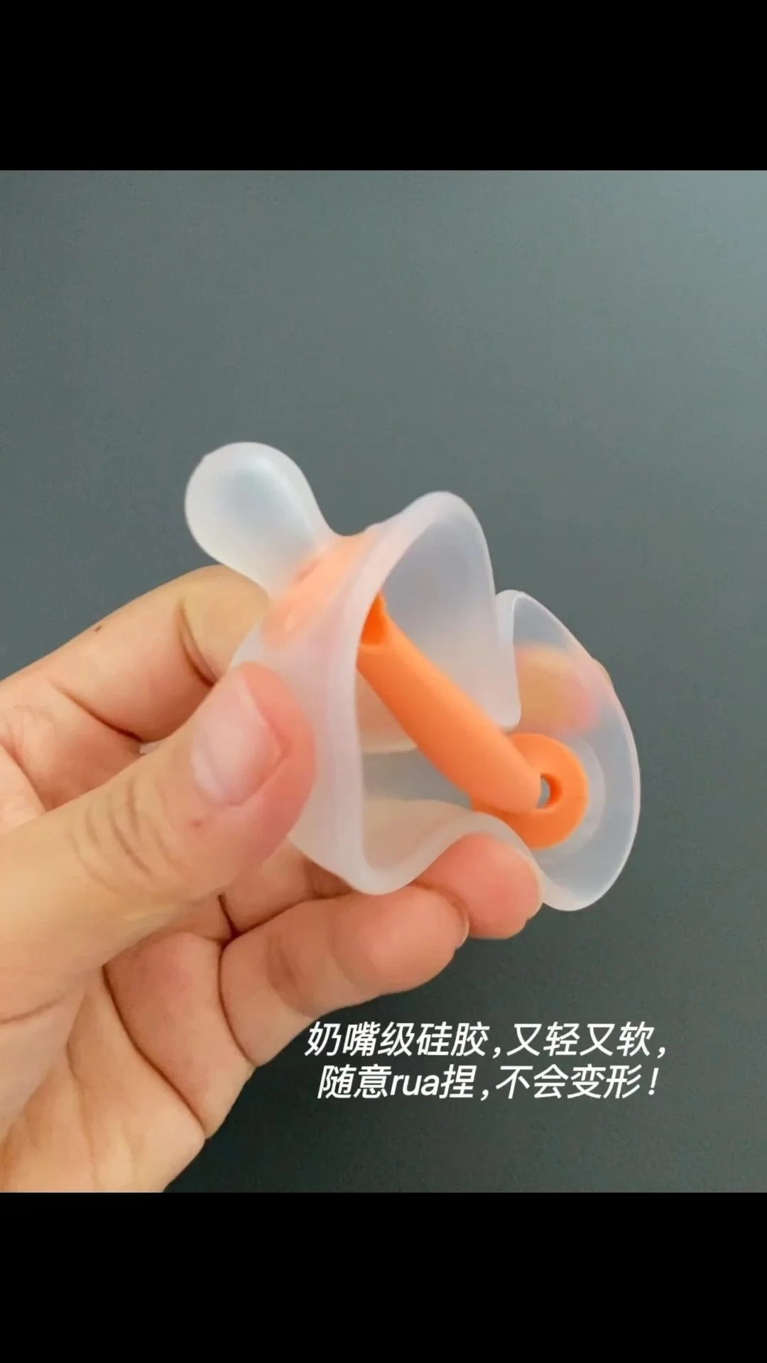 👧奶嘴同款的硅胶材质柔软Q弹又超轻,宝宝抓着毫不费力,任意揉捏不变形,想怎么吃就怎么吃。