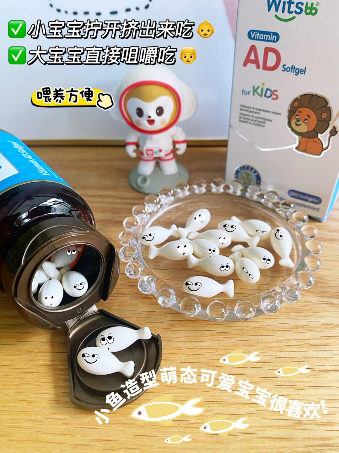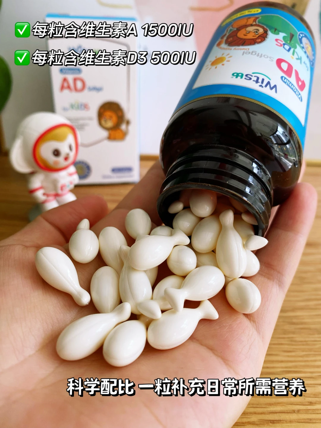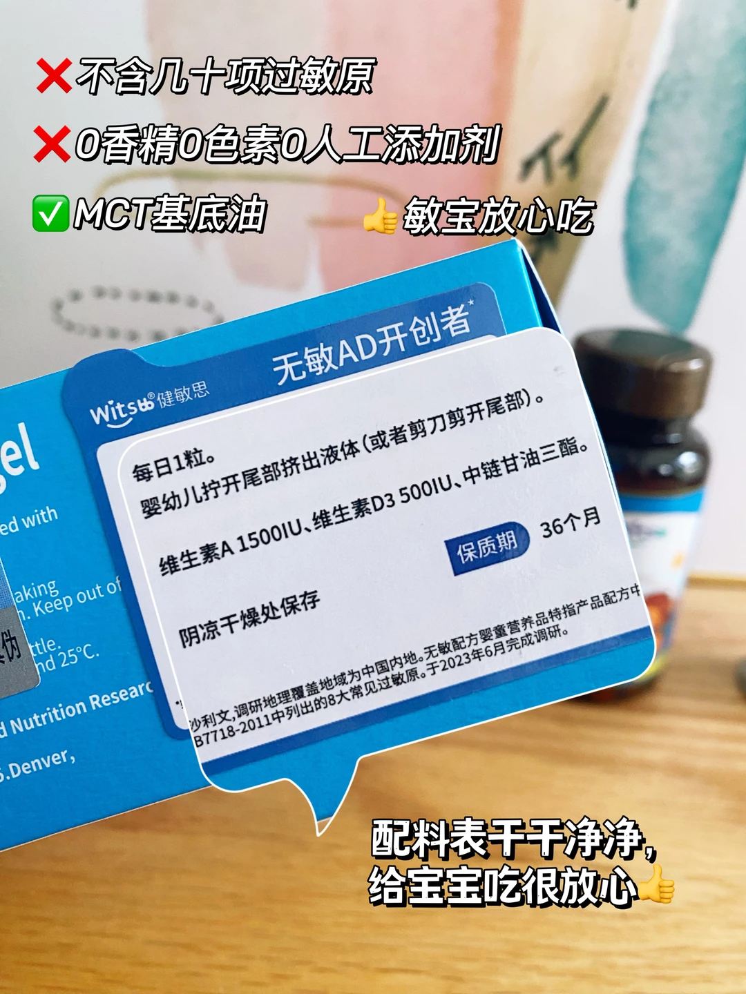 👶🏻 宝宝出生后,社区大白上门回访,会有详细的询问喂养和护理情况,并且建议从出生后15天起给补充维生素AD和D3,但是对于这两种维生素该怎么吃?真的是众说纷纭。 橙妈特意查了很多资料,也在宝宝不同月龄儿保时就这个问题认真咨询过。得到了比较统一的答案,分享给迷茫中的新手妈妈们! 📌 不同喂养方式AD/D3怎么补充? ✅ 纯母乳喂养:每天1粒AD ✅ 混合喂养:AD和D3交替,每天1粒 ✅ 纯奶粉喂养:计算每天奶粉中获取的A和D的量,判断是否需要额外补充 📌 AD/D3什么时候吃? 早上7-9点出门活动晒太阳前吃; 或者吃完奶或辅食后吃 📌 AD/D3补充多少? 宝宝出生15天起开始补充 维生素A:0-1岁【1000-1500IU/d】,1-3岁【1500-2000IU/d】 维生素D3:0-1岁【400IU/d】, 1岁以上【800IU/d】,可长期补充 ▪ 学会了维生素AD和D3怎么补还不够,宝宝营养补剂的挑选也是门大学问。尤其家里有特殊体质的宝宝,更应该谨慎选择。 ▪ 像一些营养补充剂的基底油用的是国际公认的8大过敏原中的大豆油、花生油,家有易敏宝宝的就需要避开。 ▪ 我家大宝小时候,就因为这方面的原因,总是爱抓挠,经常红一片,吃尽了苦头。后面皮肤大白建议我们更换宝宝吃的AD,就找到了这款健敏思无敏AD,果然成分配料很不错,很适合体质不耐受宝宝吃! ▪健敏思是中国无敏配方婴童维生素AD的开创者,它家的AD是专门针对体质特殊宝宝的研发的,不含几十项过敏原!所有宝宝都能吃,成分只含维生素A、维生素D3、MCT椰子油,0糖0色素0添加剂,纯净绿色,妈妈可以放心选! ▪ 在营养补充方面,它的含量也很足,每颗含有维生素A1500IU、维生素D500IU,3:1科学营养,精准控量,小小一颗满足宝宝日常所需。小月龄时拧开挤出液体吃,大宝宝也可咀嚼或吞服。吃起来没有什么特殊味道,小🐟造型充满童趣宝宝挺喜欢的。 ▪ 我家的易敏大宝从小吃到大,这次小宝出生,选AD,果断继续闭眼入健敏思ad!吃着超放心!