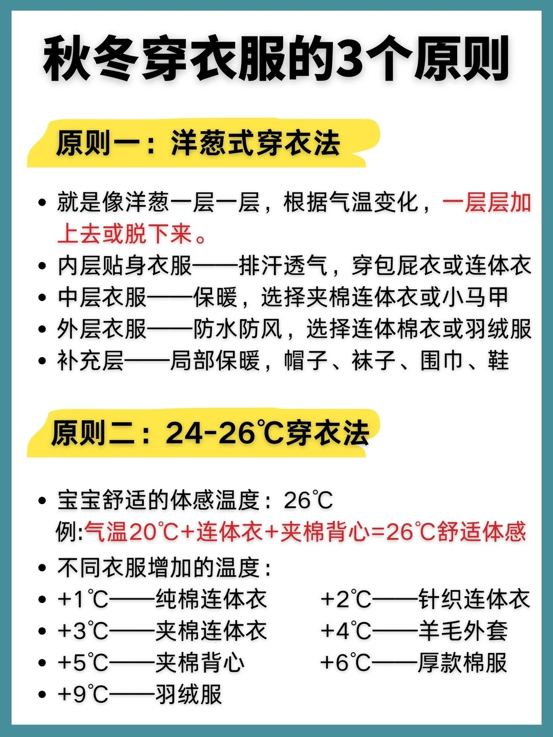 1.因为新生儿大多数情况在室内,有暖气空调,并且会盖被子包包被,所以26℃穿衣法要考虑所处的环境和包被这些,衣服不要囤太厚的。