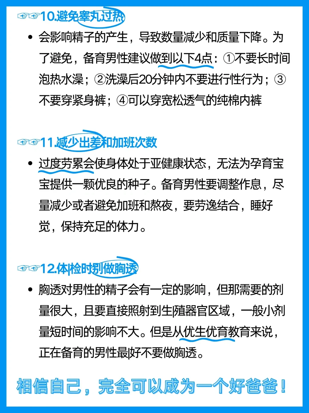看到孕妈群一些妈妈有不良孕史,妈妈单方面各种努力,爸爸不戒烟酒不锻炼身体。想说,从优生优育角度,小生命是两个人的事情,有健康的种子才有后面的其他良好的期盼。男性也要做好备孕,用实际行动迎接一个健康的宝宝。