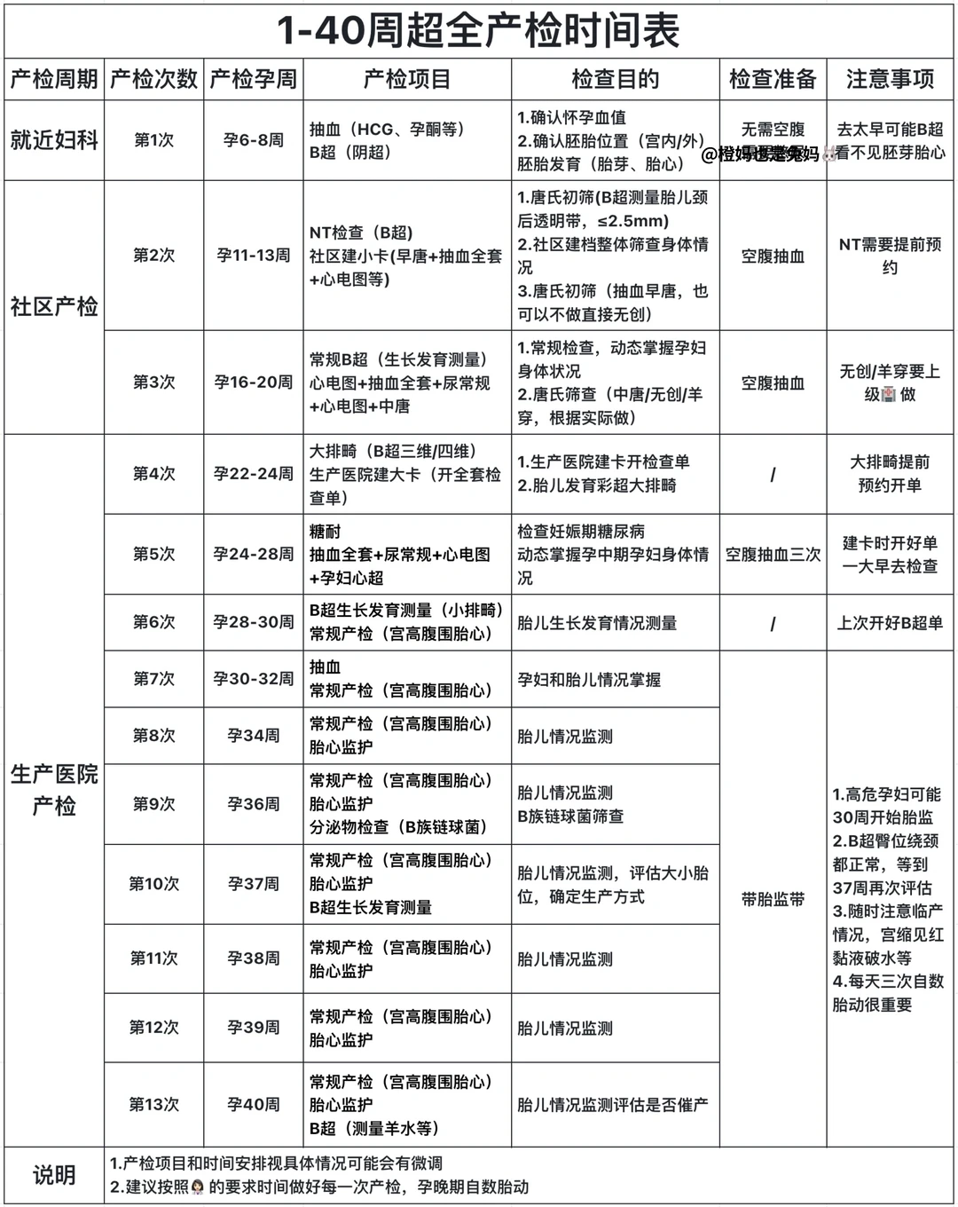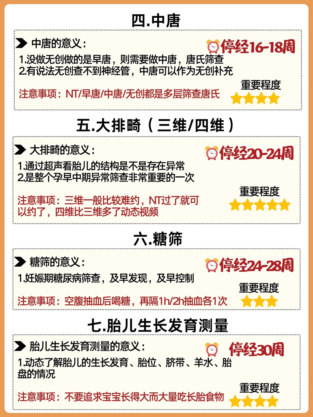 💥图片上有每次产检的注意事项,姐妹们可以自行查看️!关于无创、糖耐、三维之前也有文章分享,姐妹们需要的也可以自行搜!