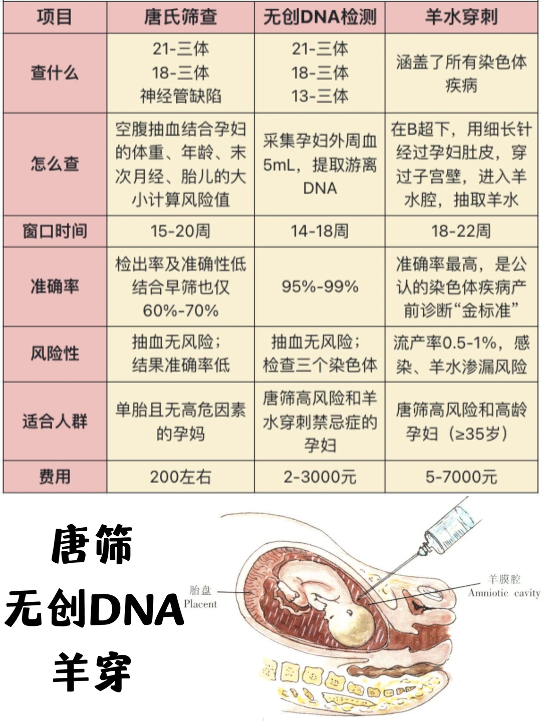 ️3⃣ 唐氏筛查/无创/羊穿:唐氏筛查,不同选择窗口期不同