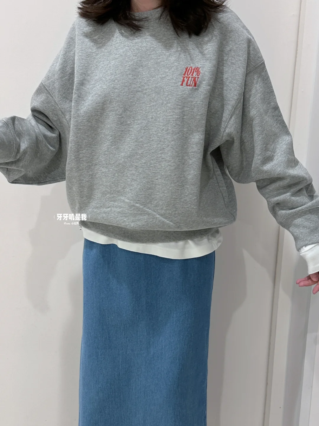 基础白t叠穿灰色卫衣 好看又不费力