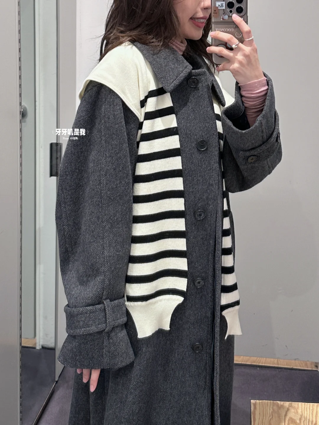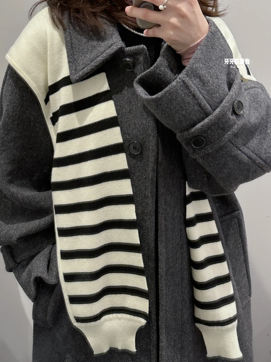 哦莫COS人字纹灰色大衣谁看了不说心动😭