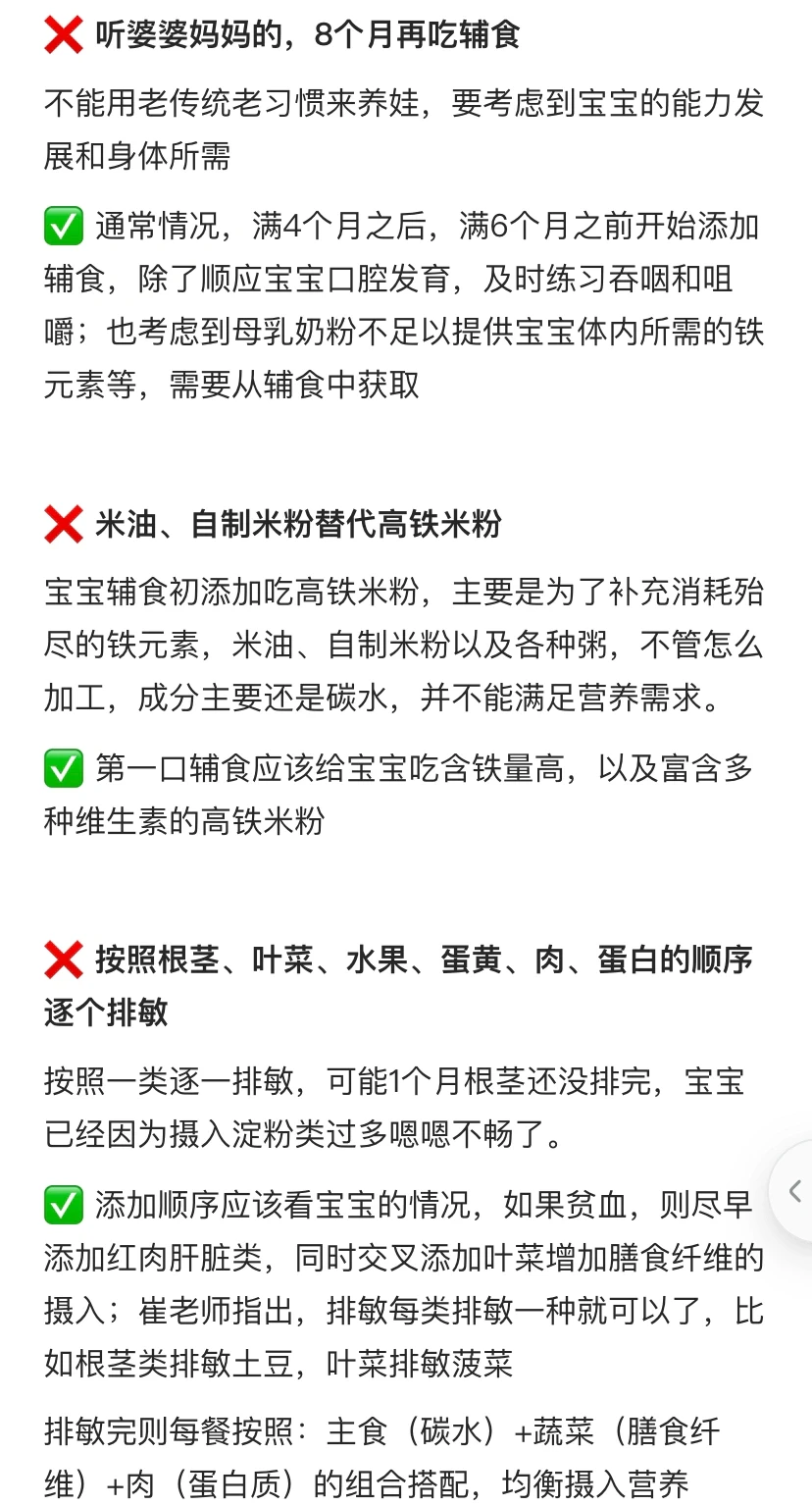 ❌ 听婆婆妈妈的,8个月再吃辅食