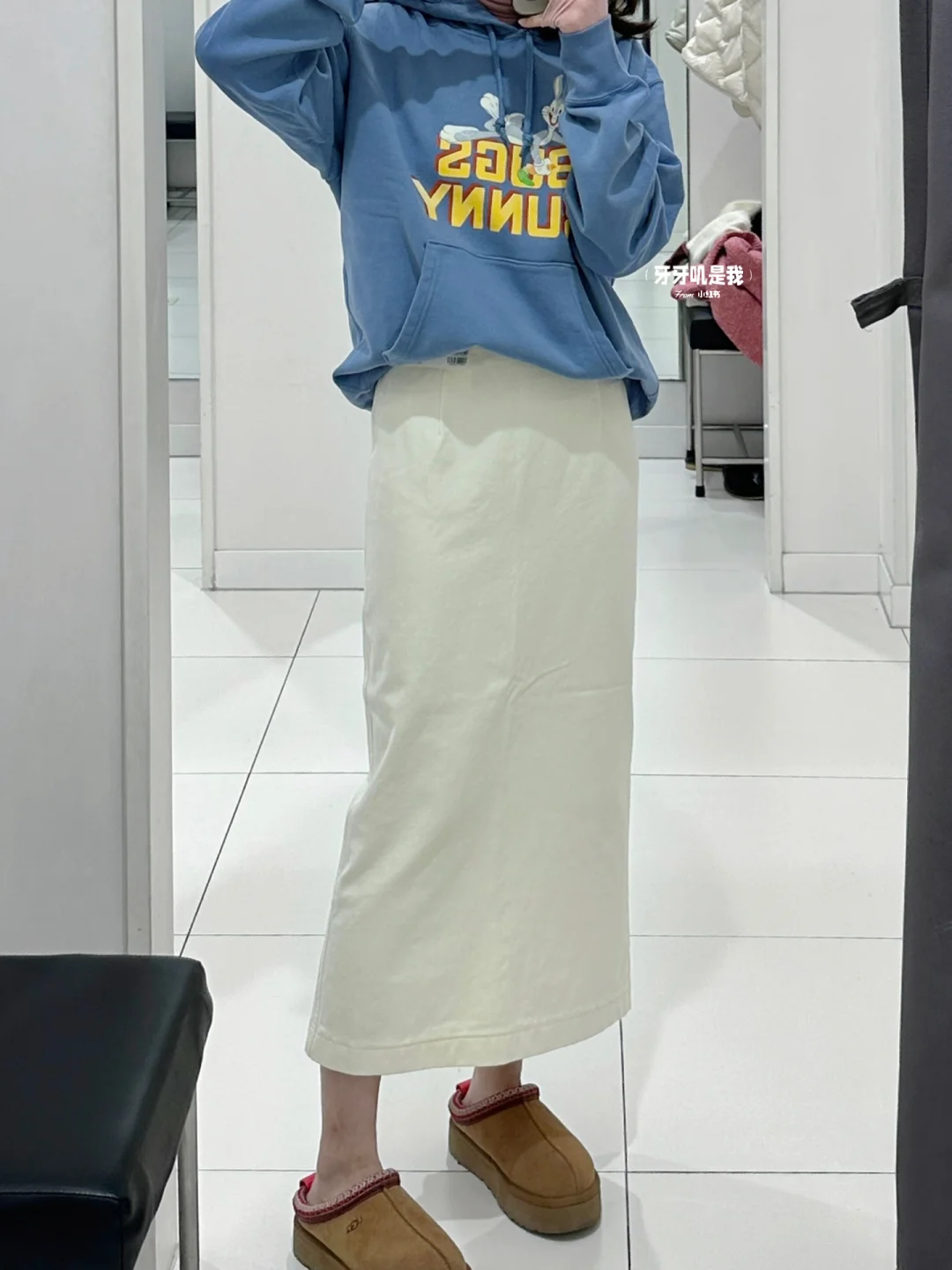 蓝色卫衣搭配白色牛仔半裙很春天了~