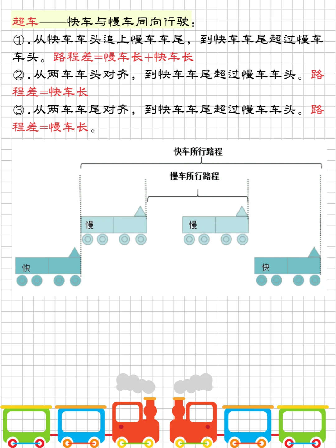 小学奥数行程类问题之解题公式详细汇总(上篇) ✅多次相遇与追及问题 ✅环形跑道问题 ✅火车过桥问题 ✅流水行船问题 篇幅有限,下篇将详细整理以下问题: ✅时钟问题 ✅电梯问题 ✅发车问题 ✅比例行程 ✅柳卡图 ……