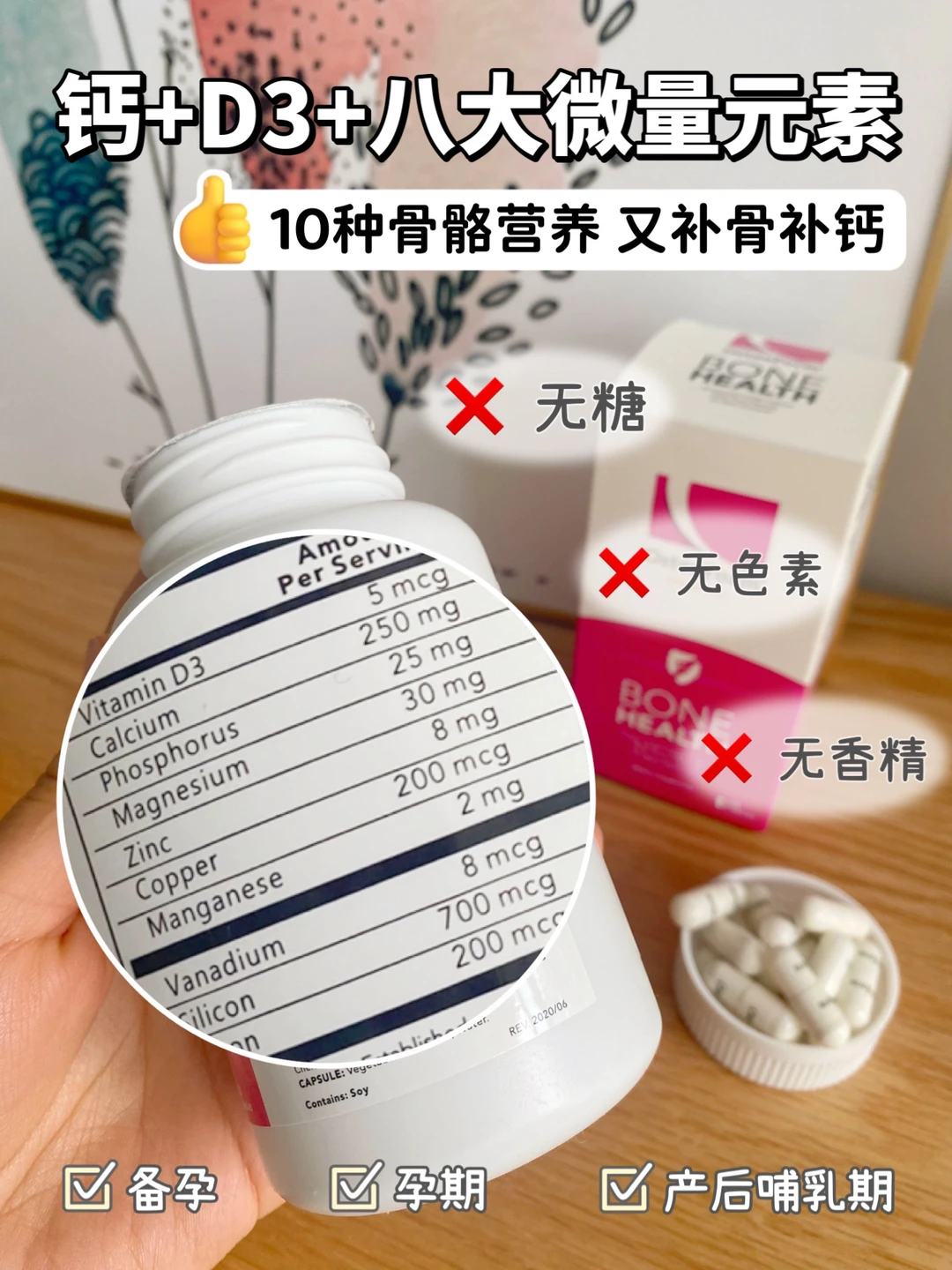 二胎早早地做好了功课,孕早期产检问过大白后,回家就开始补钙。这次吃的是有28年历史的OST氨基酸钙,它是第三代螯合有机钙,吸收率能达到90%以上,一天1-2粒就能满足孕期补钙需求,而且这种胶囊钙更好吞咽不卡喉。除了氨基酸螯合钙+维生素D,还有磷、镁、锌、铜、锰、钒、硅、硼八种矿物质,补钙又补骨!