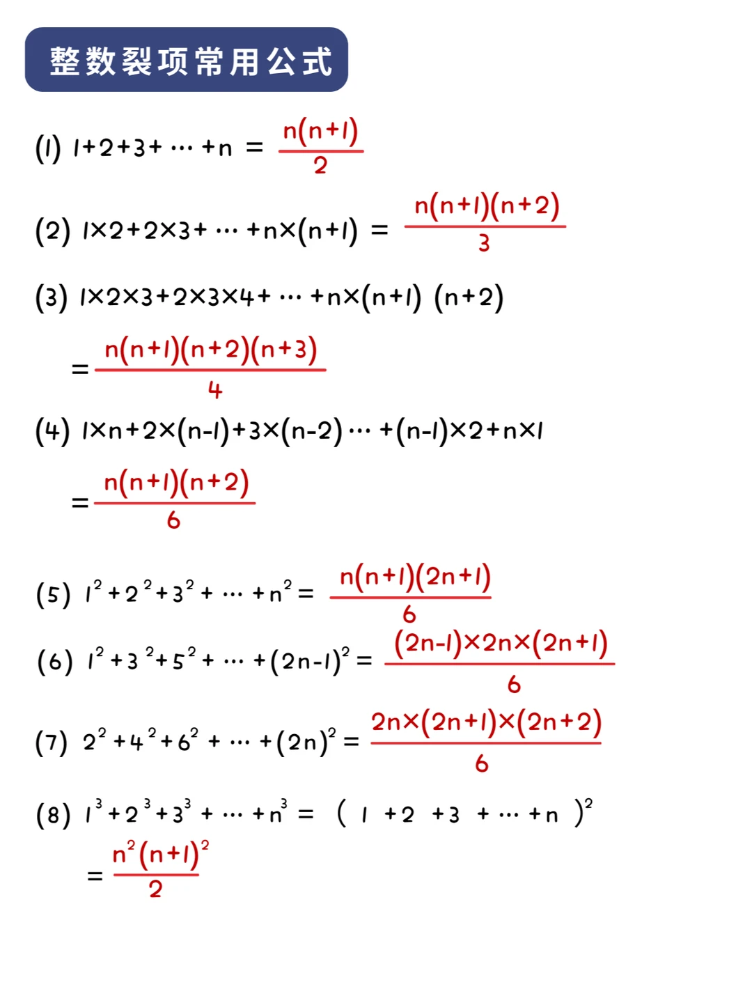 小学奥数:整数裂项公式汇总,复杂难度提升