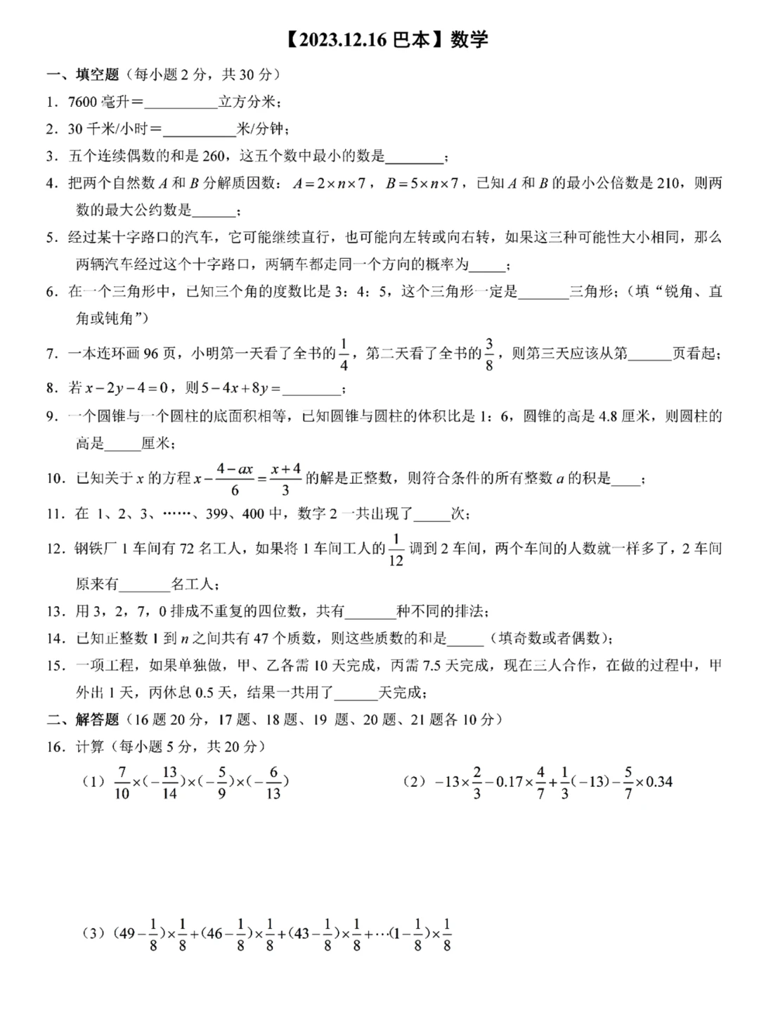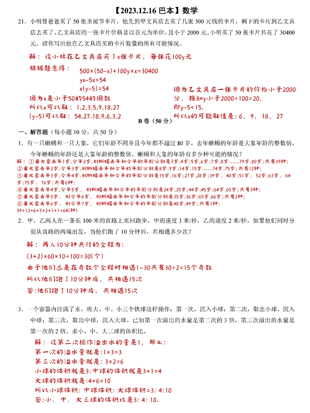 重庆小升初真题 重庆小升初 重庆小升初真题重庆七龙珠 小升初真题 重庆小升初巴本真题 小升初试卷 手写
