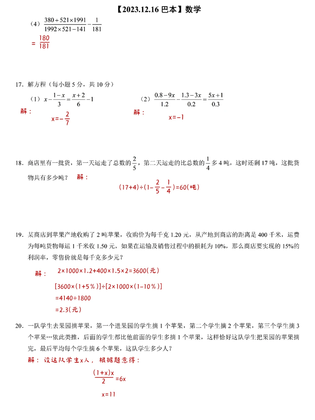 巴本2023.12.15真题答案