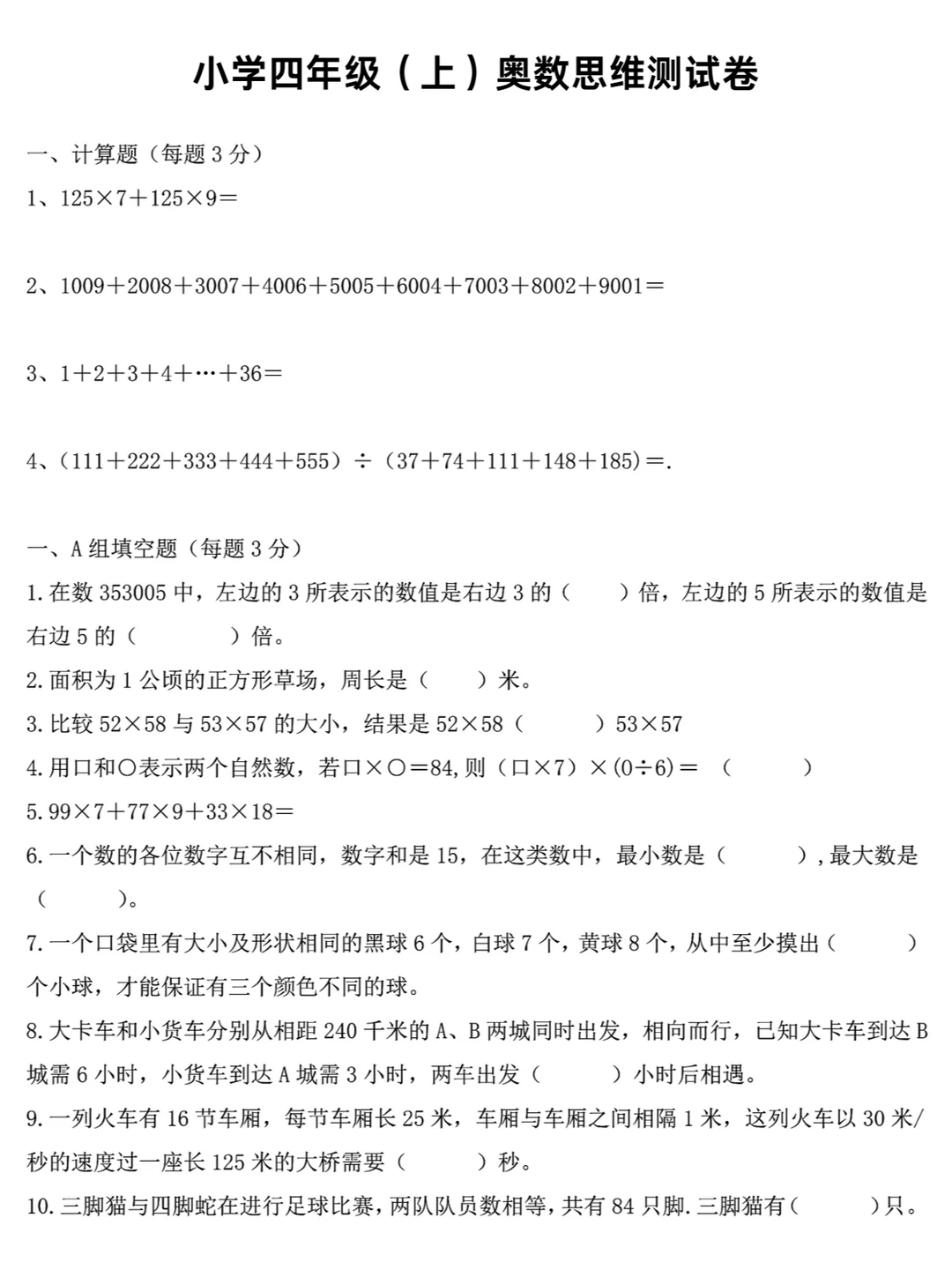 四年级奥数思维 四年级奥数题及答案 四年级奥数 小学数学思维训练 小学数学奥数 重庆奥数 四年级数学思维