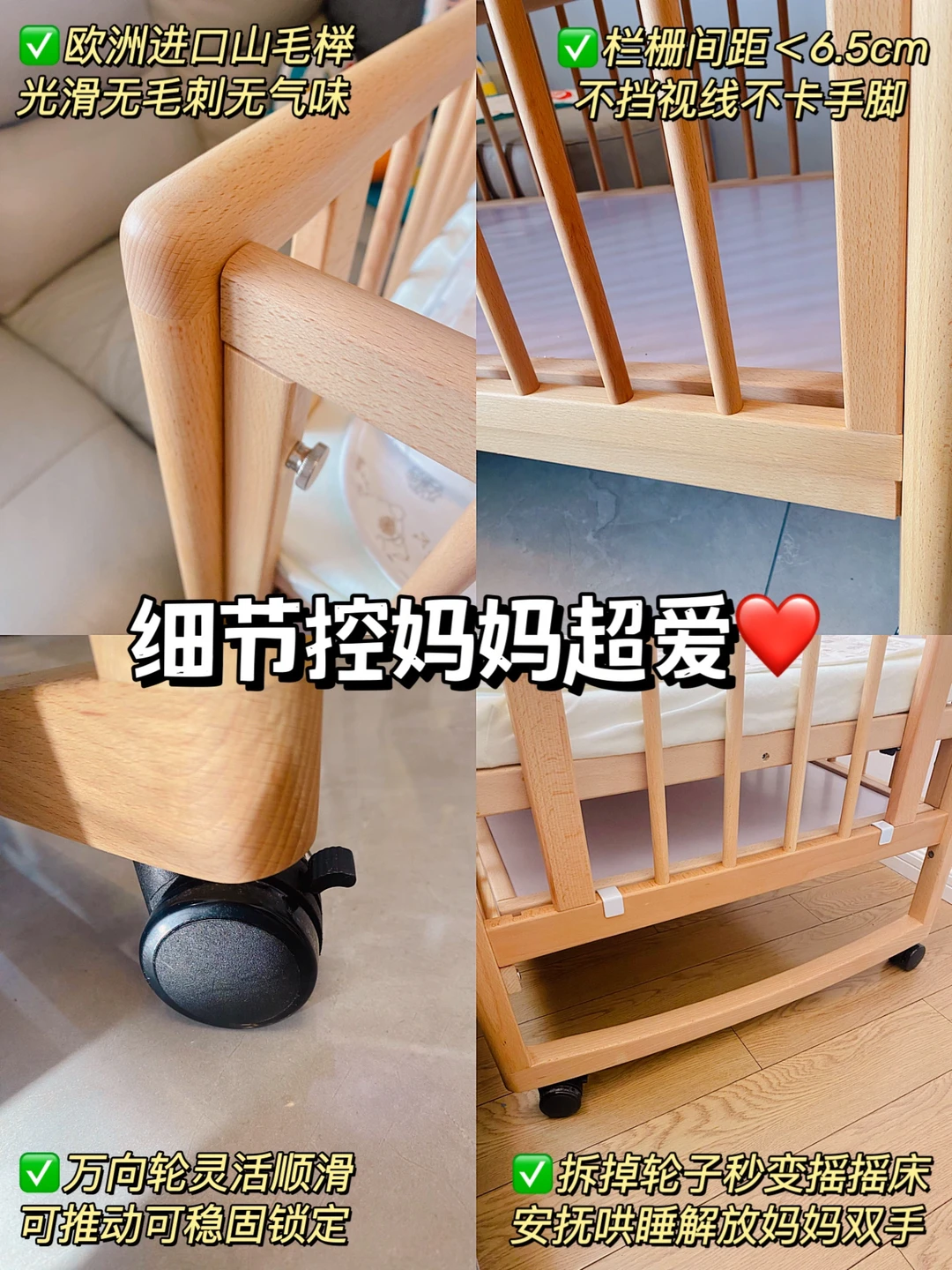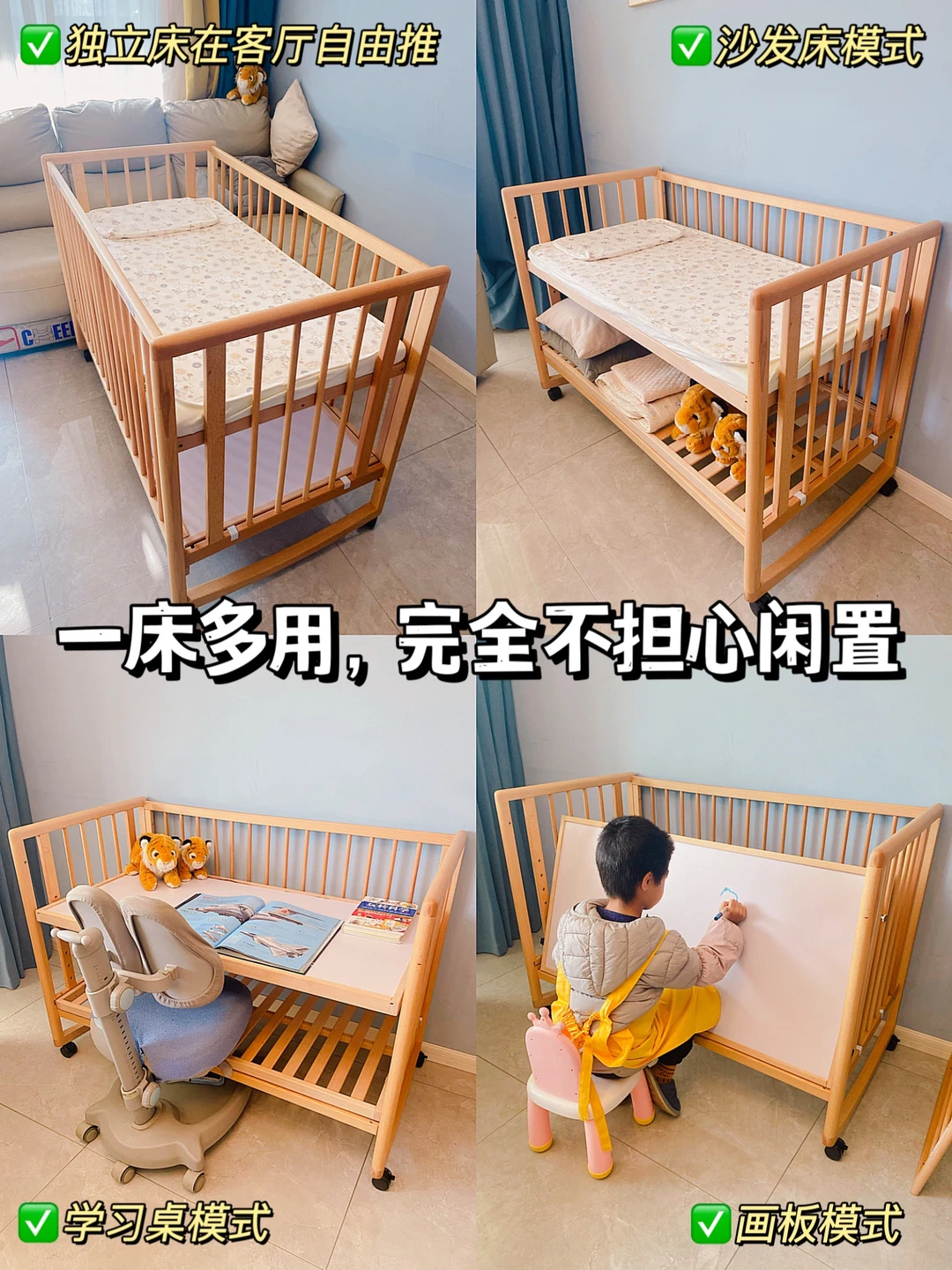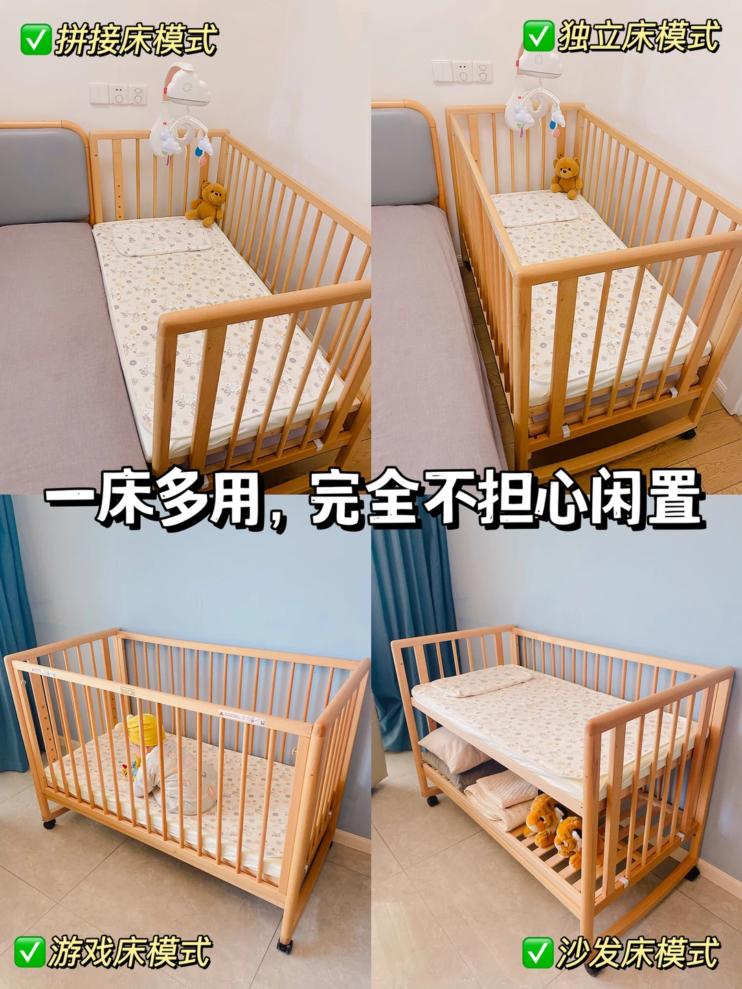 👶🏻生了两个宝宝,我们家买的蕞·值的居然是这张实木婴儿床,大宝从出生出院当天开始睡,一直到3岁多要上幼儿园了才换了儿童床;小宝也是,出生到现在每天晚上都安稳睡在婴儿床上。我家这款多功能实木婴儿床有好多用法,出生用到上学都完全没问题,设计师真的太懂有娃家庭的需求了!