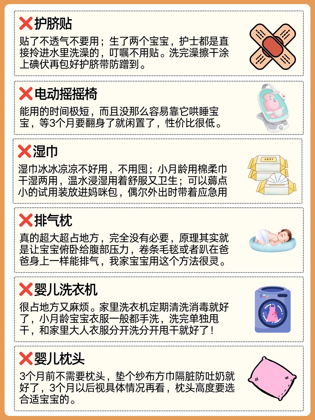 👩🏻 橙妈生完二胎六个月了才敢说,其实宝宝出生后要用到的东西真的没有那么多,一些待产包里很常见的物品生活中并不实用。今天就给大家总结一下哪些物品不需要囤?哪些出生就要用到?赶快码住,照着囤吧!