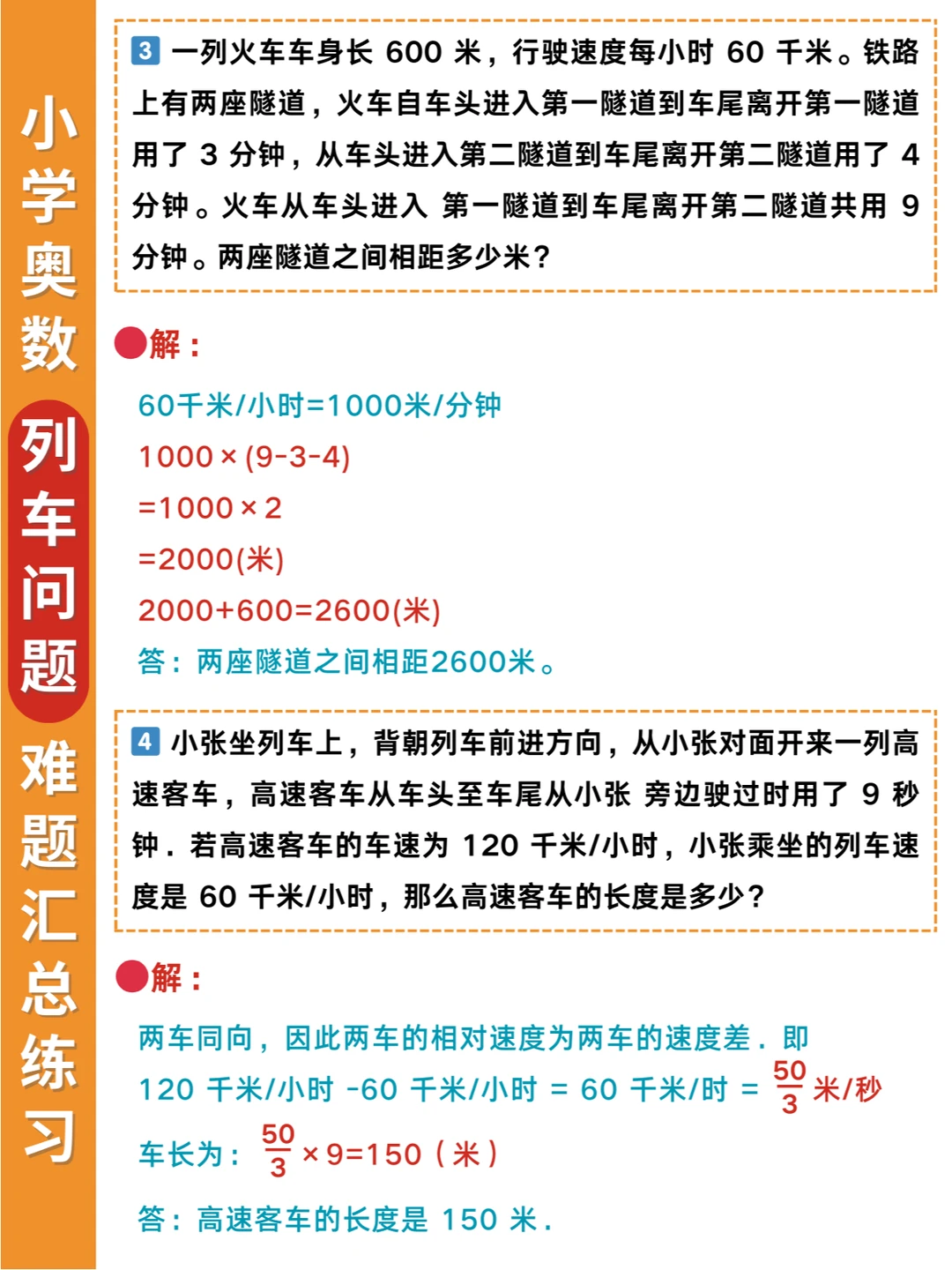 3️⃣题解答时要注意车身长与隧洞长之间的关系;