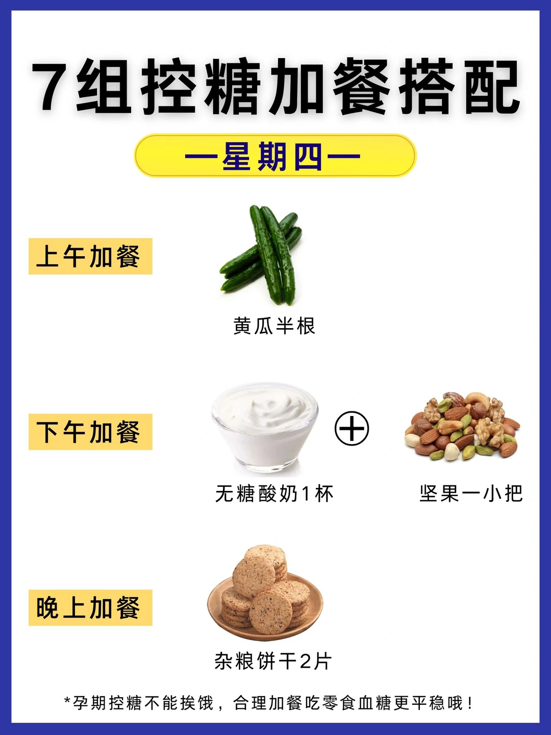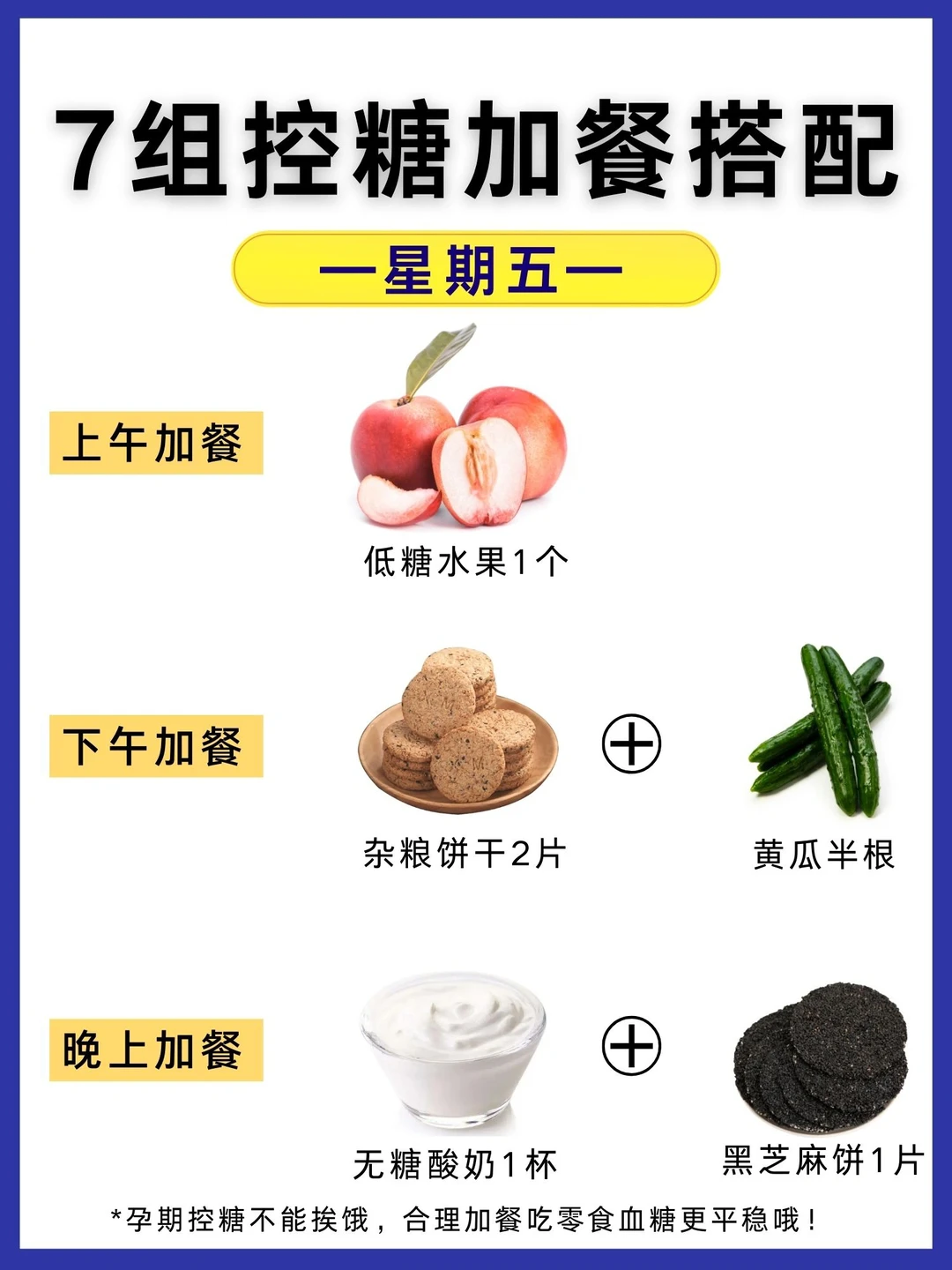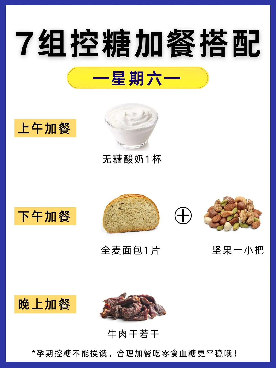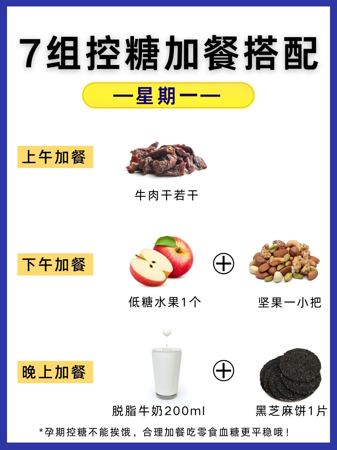 👉 控糖控体重千万别挨饿,除了调整一日三餐的量和均衡搭配,三餐之间的加餐点心非常重要,能帮助孕妈在正餐的时候吃少一些,且防止两餐之间过度饥饿,防止血糖波动、胃酸反流、消化不良等。