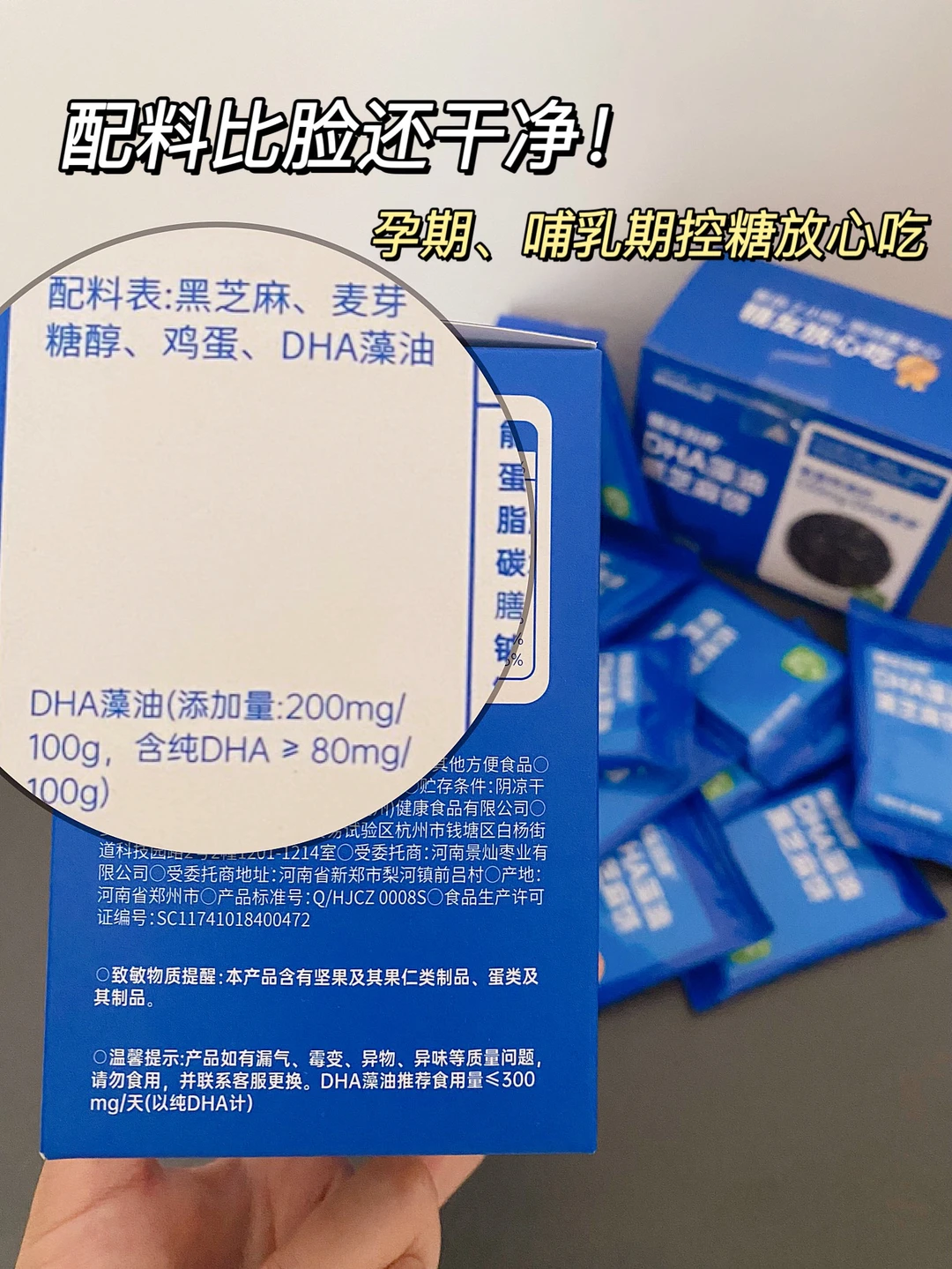 🔹作为一位妊糖妈妈,产后我还是很注意这方面的,并且哺乳期饿的特别快,对加餐零食的需求比孕期更迫切。最近挖掘到一款新出的糖友厨房DHA藻油黑芝麻饼来加餐,它配料非常干净,只有黑芝麻、麦芽糖醇、鸡蛋、DHA藻油,吃着特别放心。我孕期就吃了很多黑芝麻来补钙、铁、锌;这个黑芝麻饼每盒还额外添加了330mg的DHA藻油,守护我和宝宝的健康。