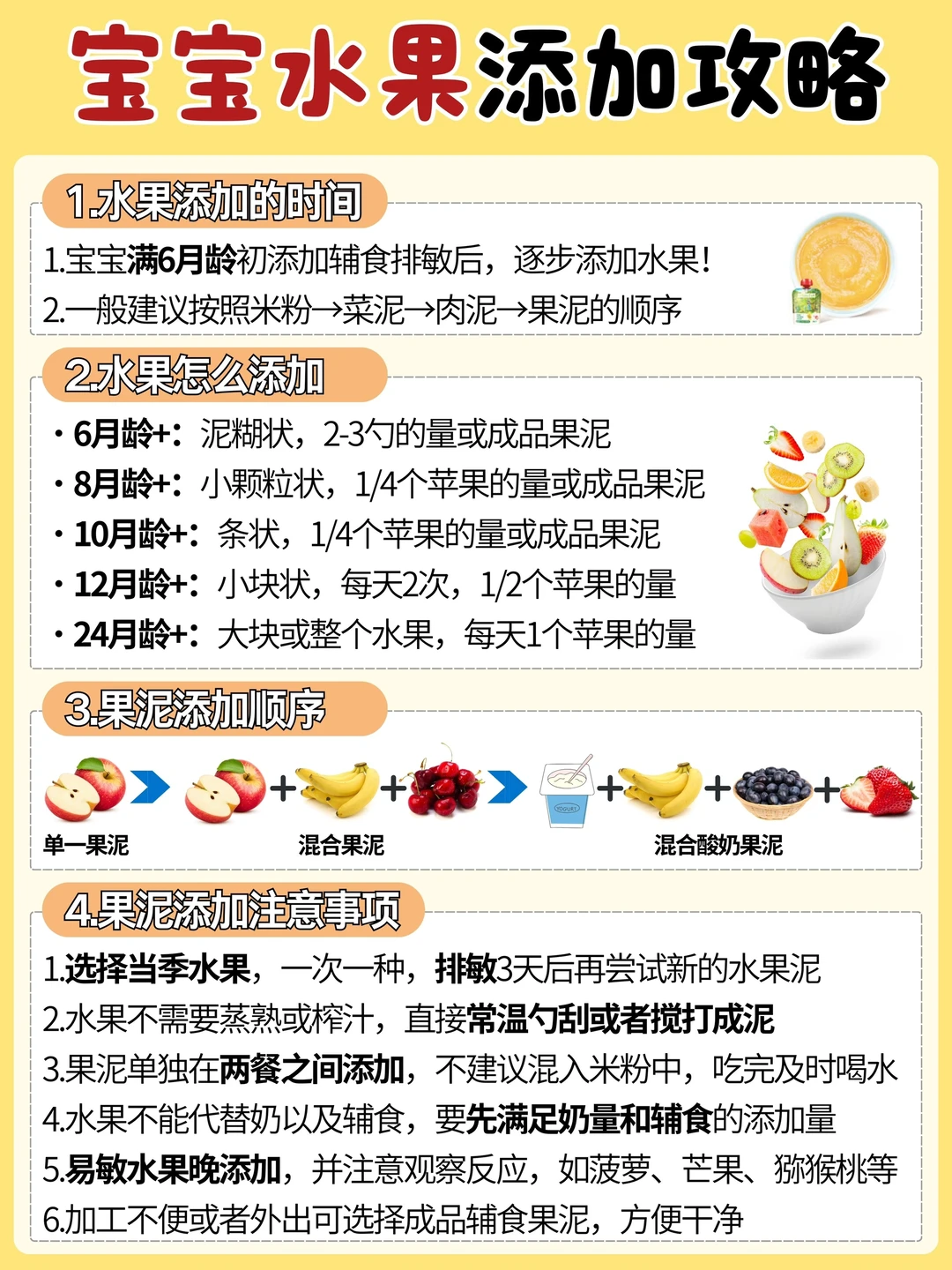 🍎 水果初添加注意事项: