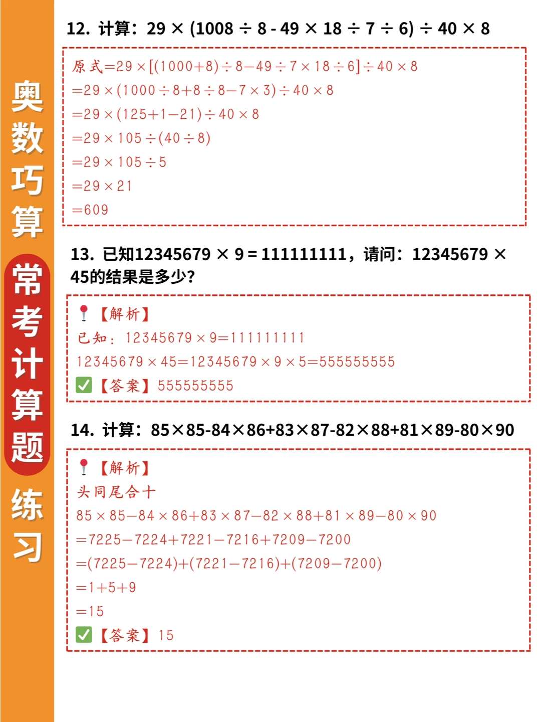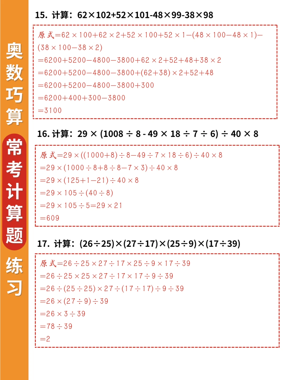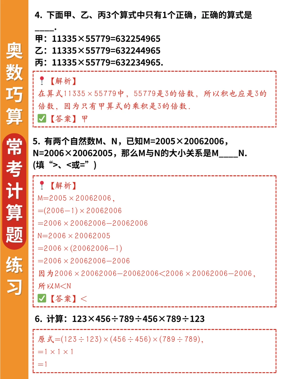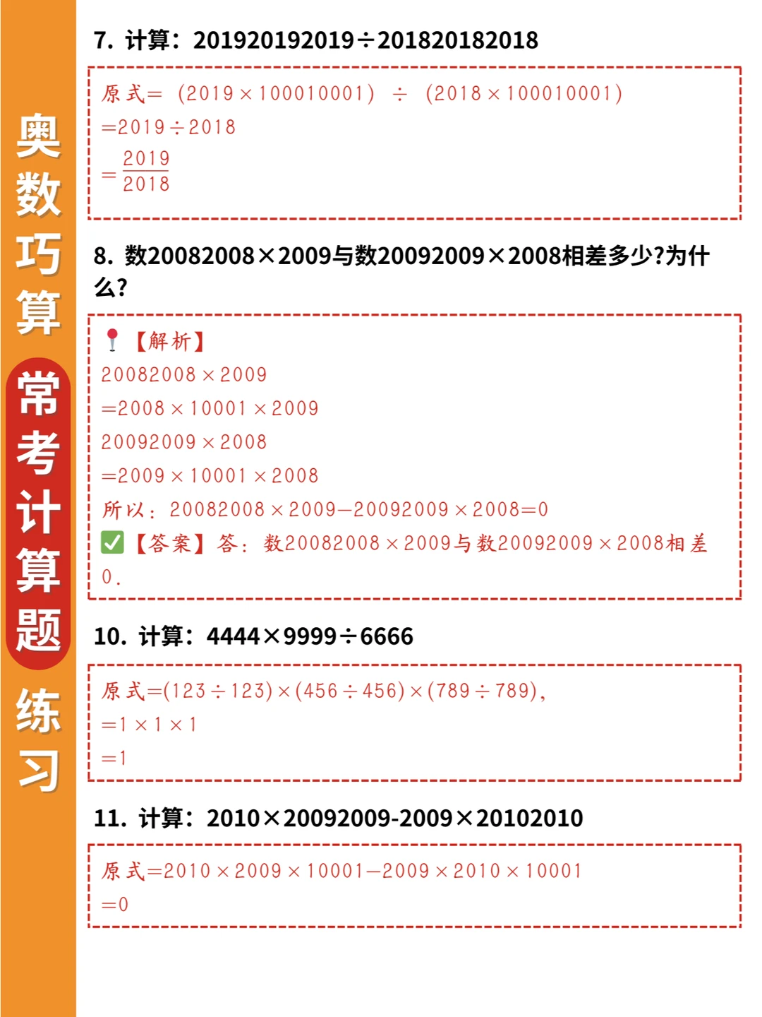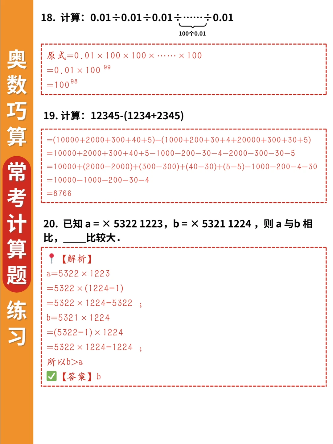 🌈小学奥数思维训练:乘除法中的巧算20道常考练习题(附答案),适合三四年级孩子进行提升💪💪