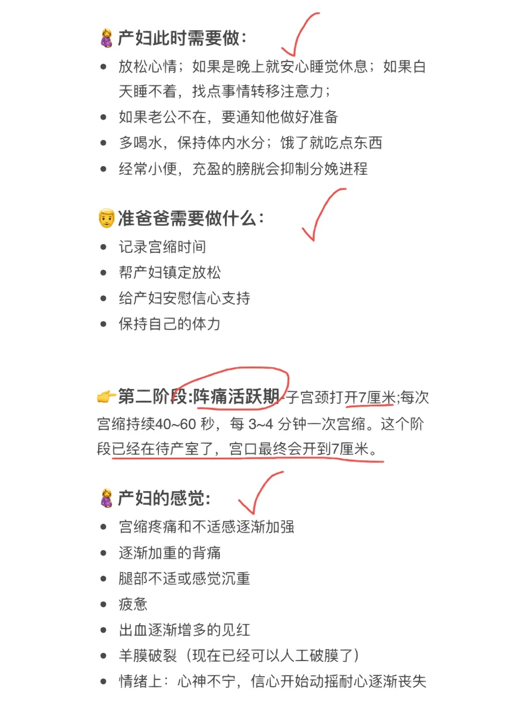 👉第二阶段:阵痛活跃期-子宫颈打开7厘米;每次宫缩持续40~60 秒,每 3~4 分钟一次宫缩。这个阶段已经在待产室了,宫口最终会开到7厘米。