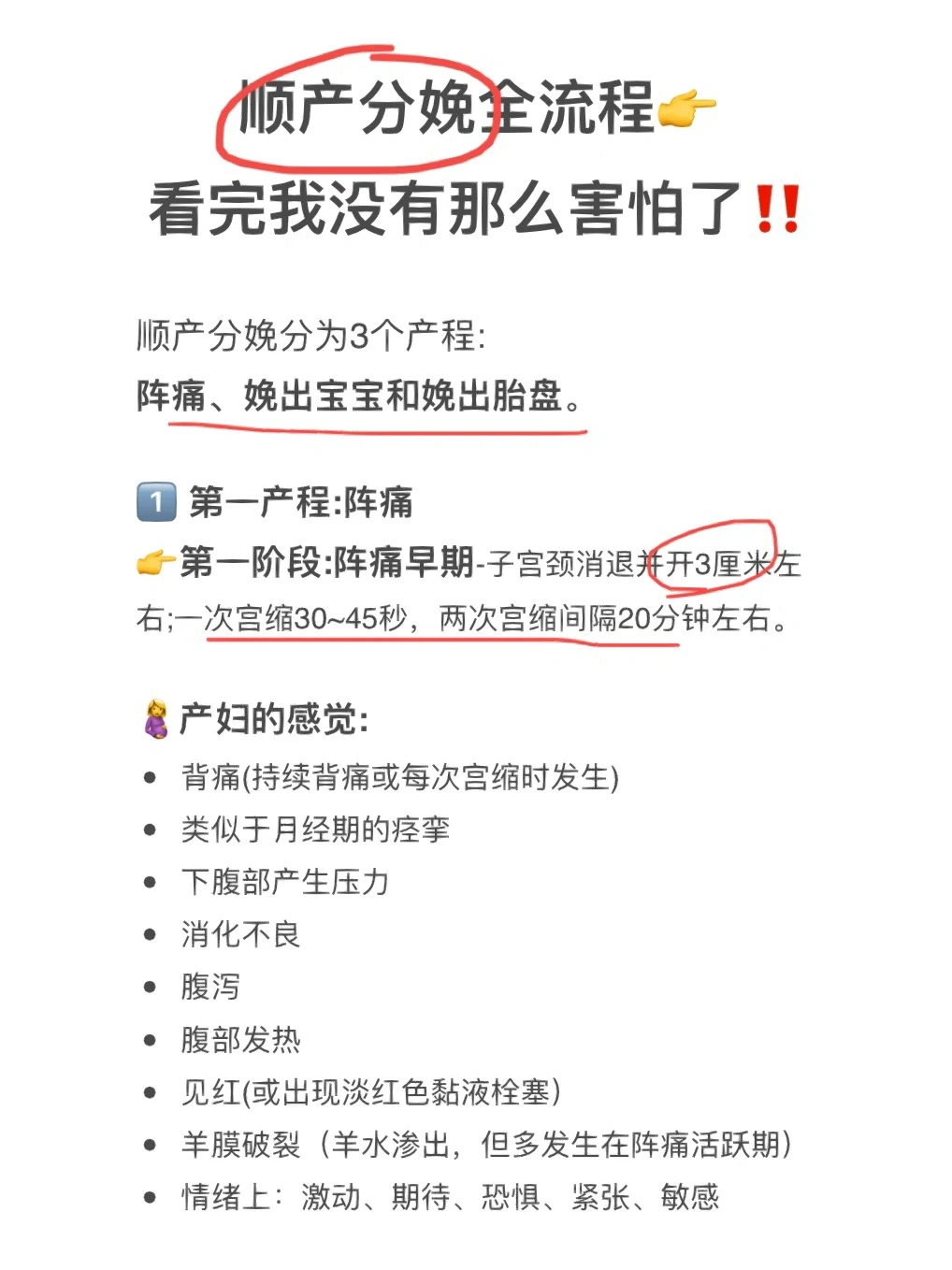 👉第一阶段:阵痛早期-子宫颈消退并开3厘米左右;一次宫缩30~45秒,两次宫缩间隔20分钟左右。