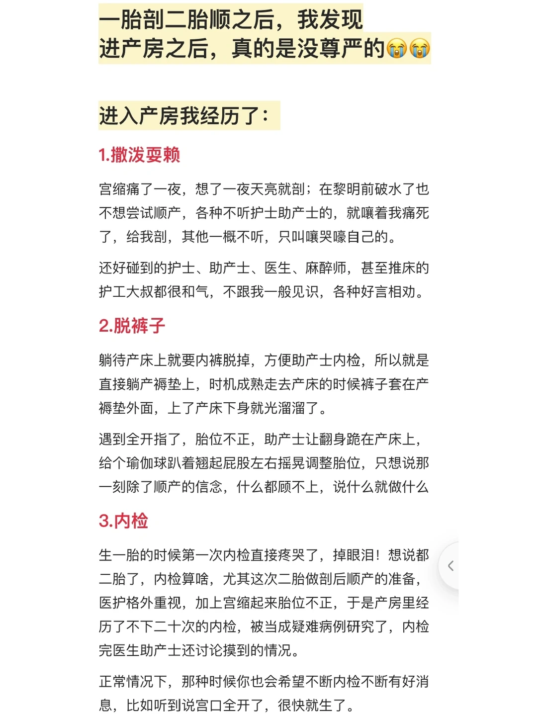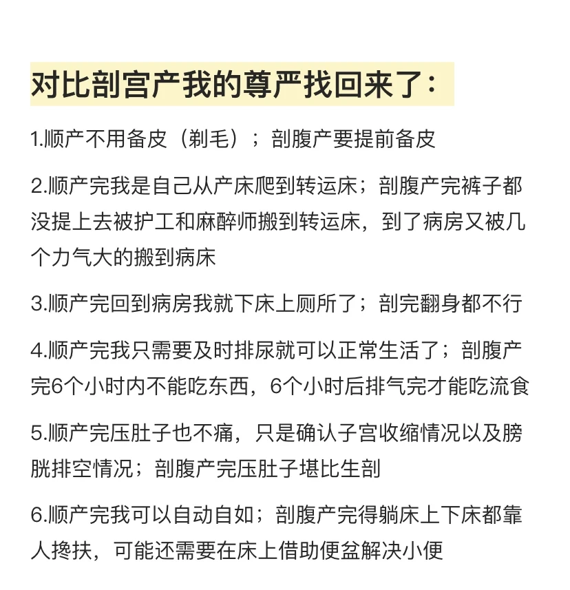 3.顺产完回到病房我就下床上厕所了;剖完翻身都不行