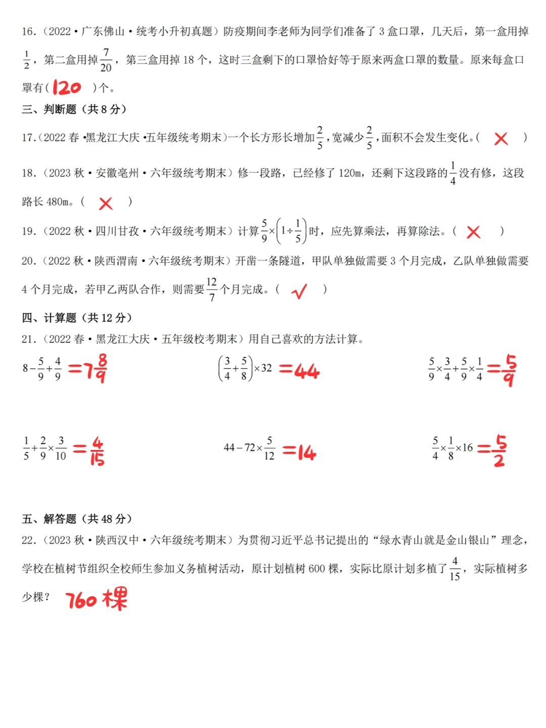 六年级数学上:分数混合运算-真题专项练习