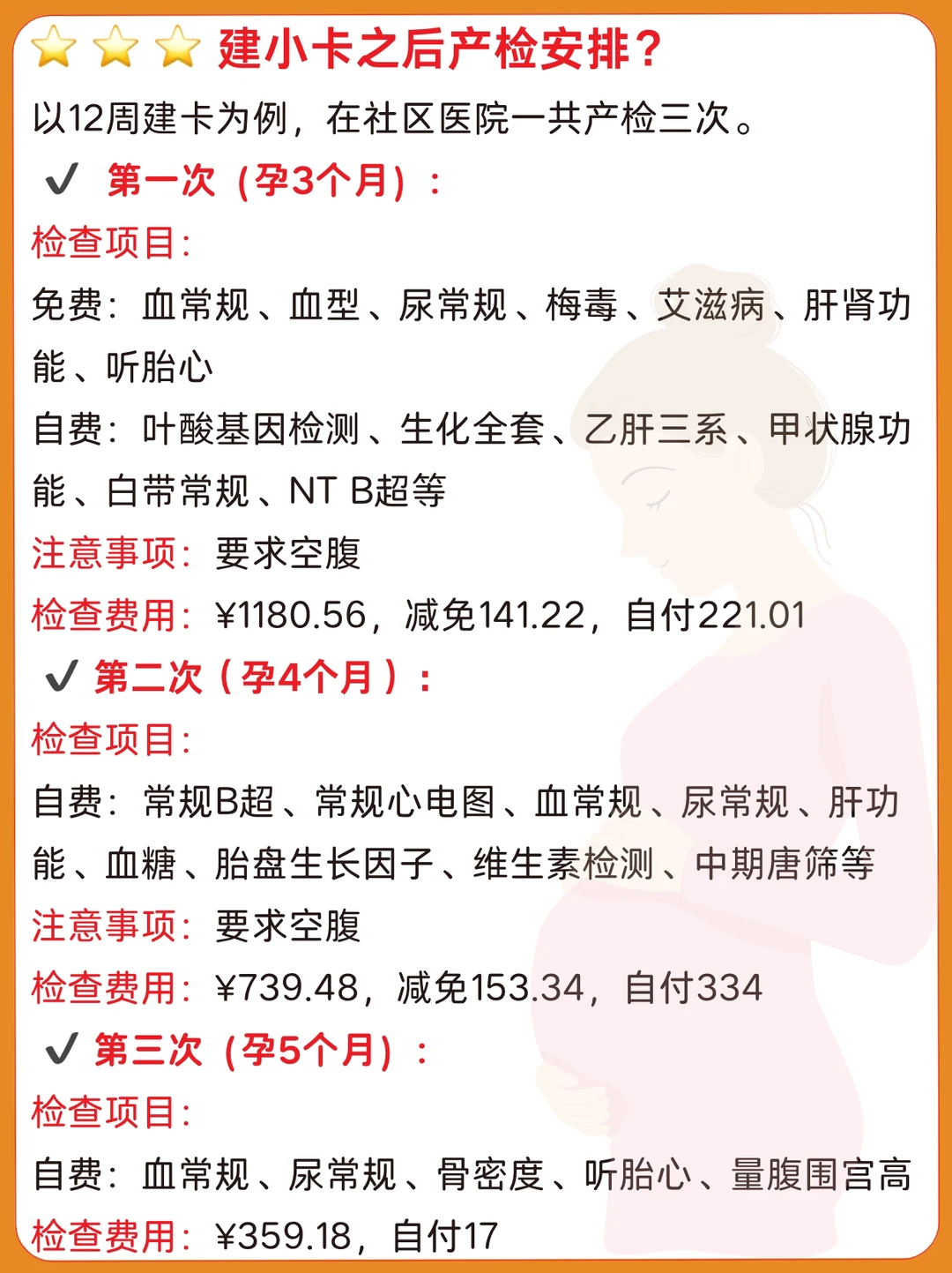 以12周建卡为例,在社区医院包含建卡这次一共产检三次。