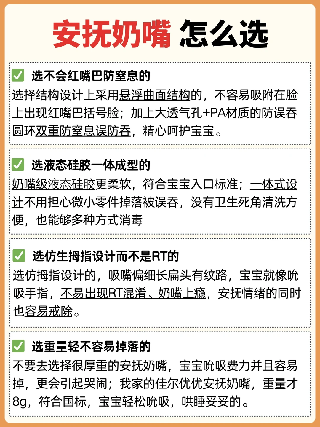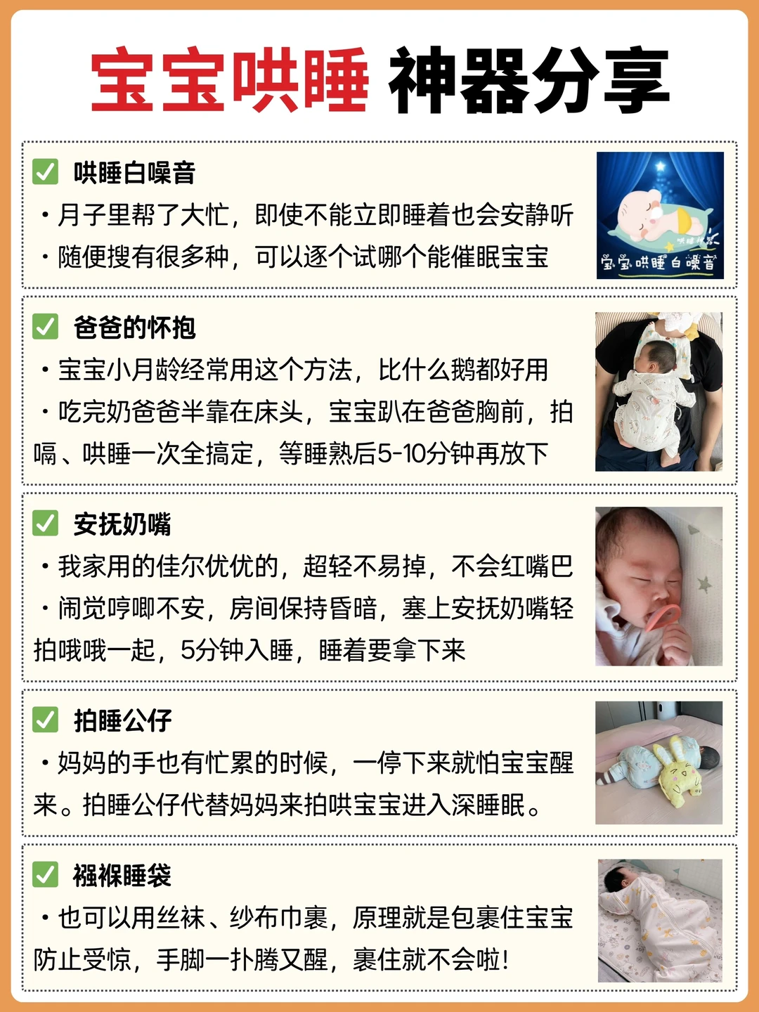 🌈 宝宝哄睡难?落地醒?频繁夜醒?日夜颠倒……宝宝睡觉问题是令很多新手妈妈都感到崩溃的事情。 · 🌈 我从二胎孕晚期就在学习各种育儿的方法,并在小宝的成长中付诸实践,小宝从二月龄短暂的落地醒到了3月龄就规律睡觉,逐步睡整觉,真的特别省妈。我的方法分享给大家,希望能帮助到正在熬鹰的各位妈妈们! · 🌈 直接说方法: 1.捕捉睡觉信号 宝宝常见的睡眠信号:揉眼睛、打哈欠、啃手、安静不动、目光不灵活等 一有睡眠信号立即保持安静哄睡,基本上5分钟内就能睡着。 2.规律作息,固定时间哄睡 白天培养宝宝吃玩睡的规律,在固定的时间段哄睡 晚上睡前仪式感要形成,培养固定的生物钟 3.睡前吃饱,拒绝饥饿夜醒 母乳宝宝睡前这顿瓶喂,比白天多20-40ml 奶粉宝宝睡前2小时密集喂奶,比如7点一顿,8点半一顿 4.及时接觉,直至深度睡眠 小觉有醒的迹象,立即嘴里噢噢轻哼,迅速过去一只手稍有力度按住宝宝肩膀,另一只手轻拍屁股后背接觉,一定要及时! · 🌈 我的哄睡神器: ✅ 哄睡白噪音 尤其是月子里,音乐放起来立即不吵闹了,安安静静 ✅ 爸爸的怀抱 爸爸靠着床头半躺,宝宝喝完奶趴着爸爸胸前,打嗝哄睡一起搞定,比什么大白鹅都好用 ✅ 安抚奶嘴 我家宝宝满月后就会吃手了,于是给她用了佳尔优优拇指安抚奶嘴,它是仿拇指设计的,口腔里面接触点更多,能让宝宝区分吮吸手指和乳头,不担心rt混淆,不上瘾;悬浮3D曲面设计,两侧都有圆呼吸孔,不闷鼻子不红嘴巴。小小的一个才0.73g,宝宝吮吸拿握都很轻松不易掉落,自然安抚不怕哭闹。奶嘴级液态硅胶材质很柔软,一体成型不怕有小零件掉落,清洗也无卫生死角。 每次哄睡小宝烦躁不安的时候塞给她,不到5分钟就睡着了,拿掉后睡得也很踏实,哄睡变得更轻松了。 ✅ 拍睡公仔 妈妈的手也有拍累的时候,尤其接觉时,用个可以自动拍睡的宝贝,解放妈妈 ✅ 襁褓睡袋 小月龄宝宝很容易受到声音的惊吓扑腾手脚惊醒,给宝宝穿个襁褓睡袋,或者裹个襁褓巾,束住胳膊不怕被惊醒。