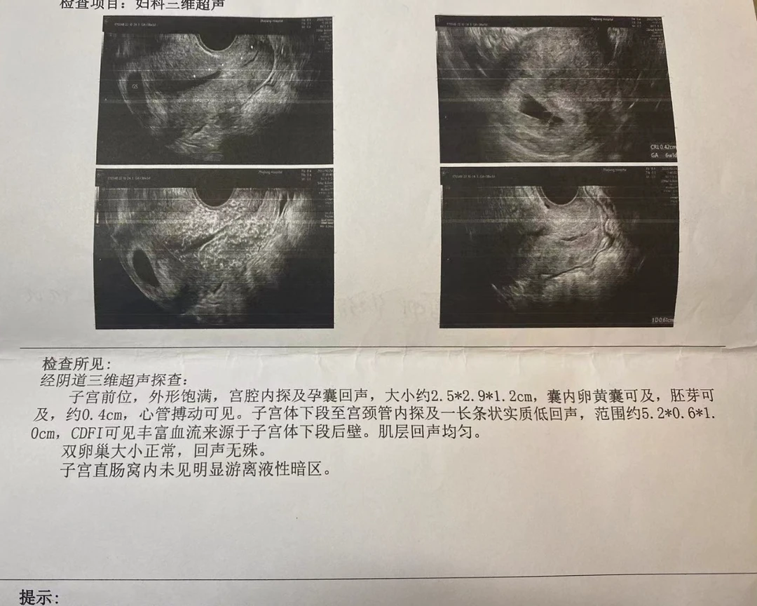 1⃣️如果是各方面情况都正常的孕妈,可以不着急去医院,等到8周左右再去,抽血+B超一起做,看血值以及看胚胎位置胎芽胎心发育情况。