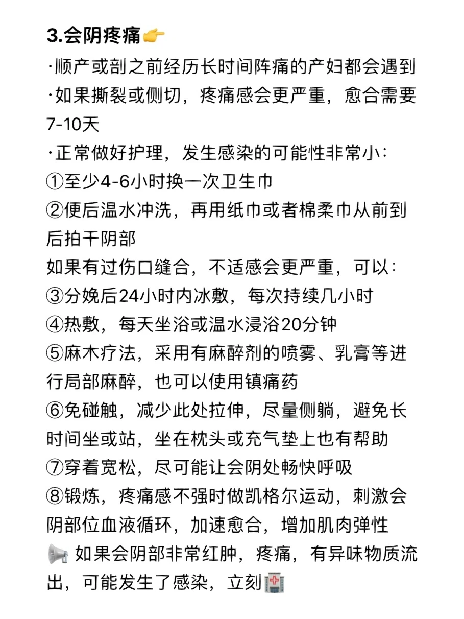 ✅会阴会出现不适、疼痛、麻木等症状(有缝合会疼得更厉害)。
