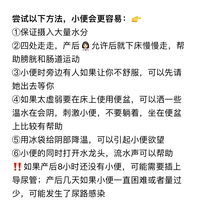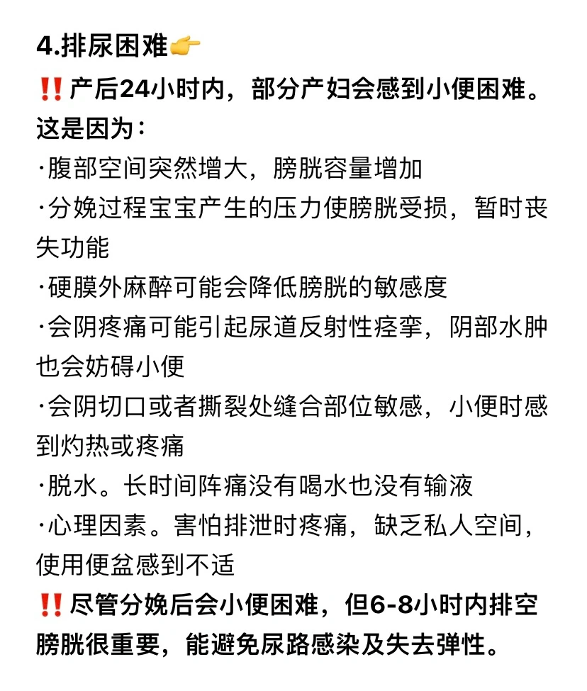 ✅产后一两天小便困难。