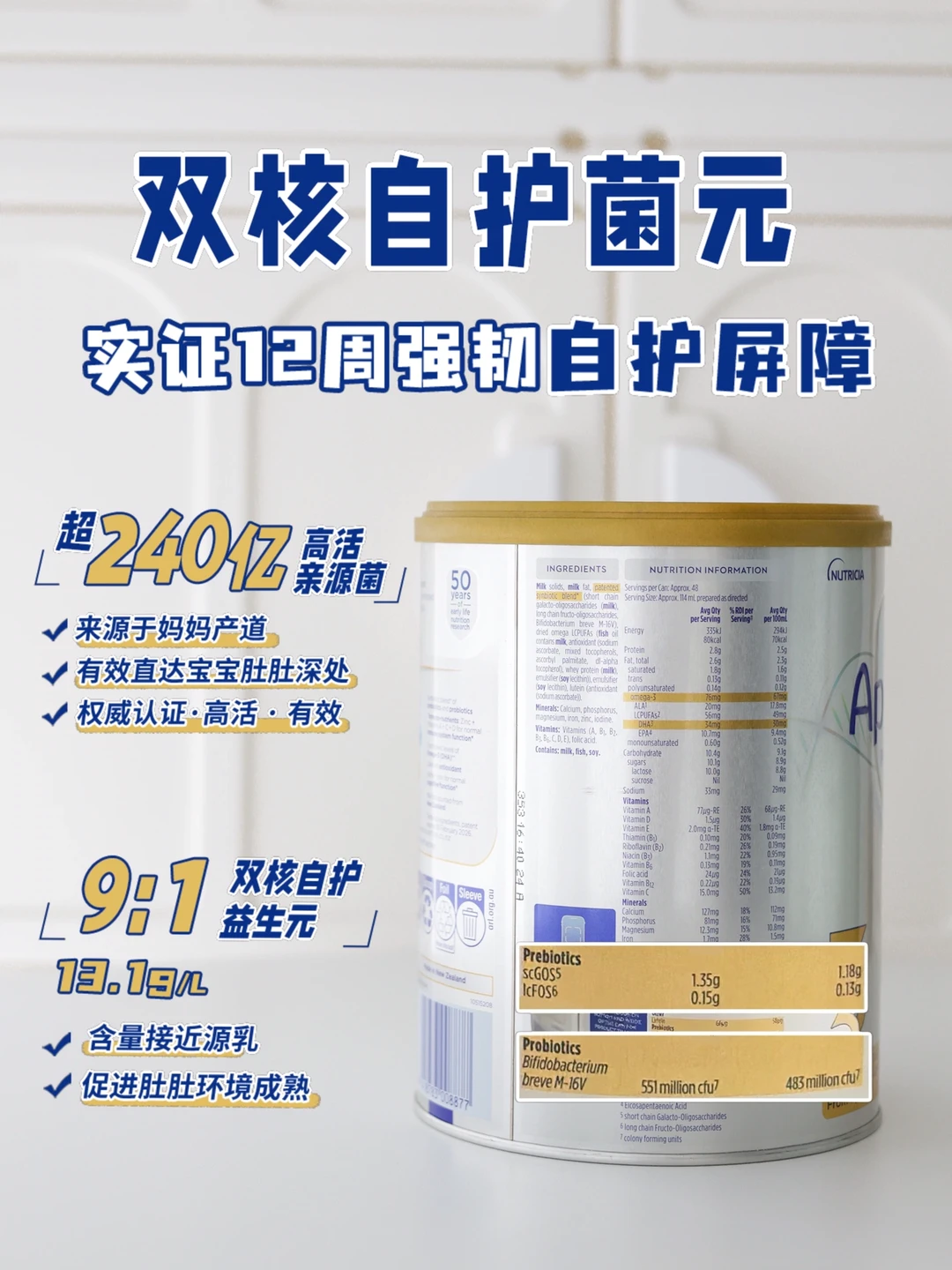 ✅自护力这块直接拉满,添加了超240亿高活亲源菌,这可是妈妈产道和健康宝宝身上的同款原生菌,宝宝喝了之后能在肚肚快速扎根安家,搭配双核9:1黄金配比自护益生元GOS/FOS,含量足足有13.1g/L,贴合天生营养所需。不仅从根源上帮宝宝搭建肚肚良好环境,提升宝宝的自护力,体质也稳得住,现在宝宝换季也不会动不动就感冒发烧,皮实得很!