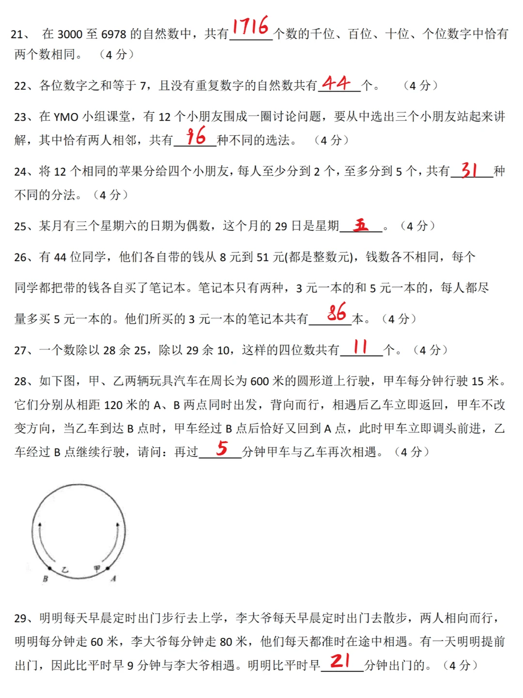 五年级奥数思维测试题,常做压轴题,有难度