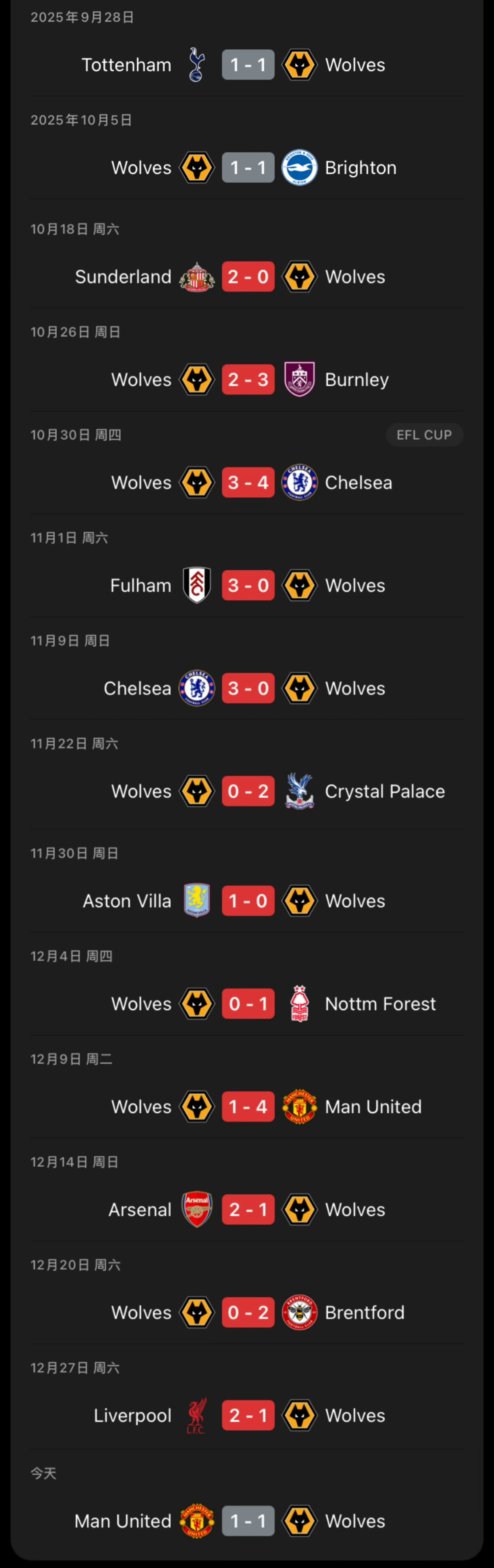 目前英超状态最差的三支球队:西汉姆连续8场不胜,伯恩茅斯连续10场不胜,狼队连续15场不胜。在这样的困难时期,三家都分别在老特拉福德收到了曼联雪中送炭的1分。