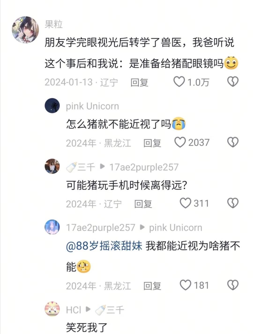 朋友学完眼视光后转学了兽医,我爸听说这个事后和我说:是准备给猪配眼镜吗