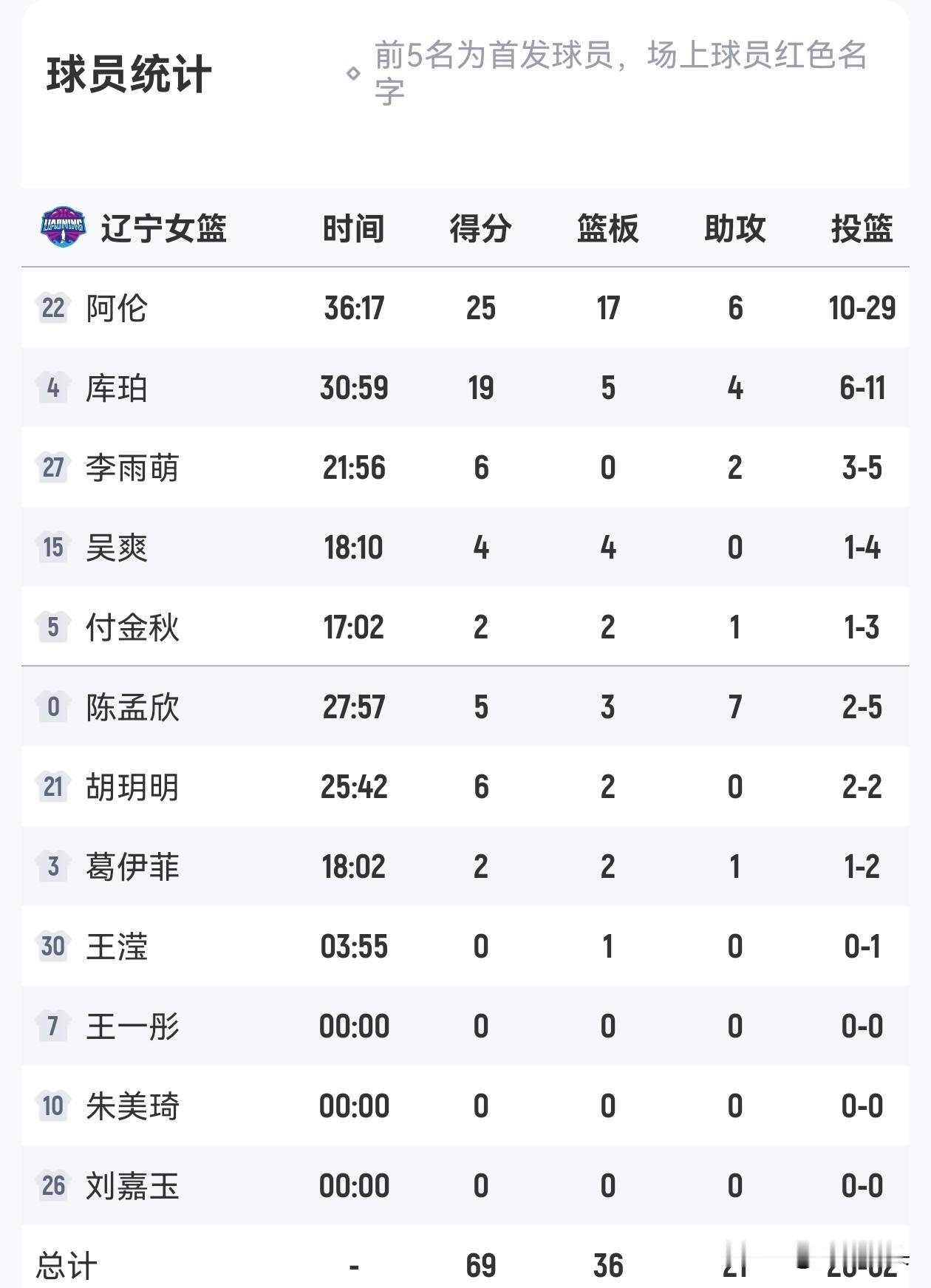 12月15日辽宁女篮坐镇主场迎战来访的河南女篮,双方经过4节激烈的争夺最终辽宁女篮以69-59战胜河南女篮,本场比赛也是WCBA常规赛B组榜首之争,辽宁女篮本场比赛取胜的关键是双外援发挥了至关重要的作用,阿伦与库珀联手拿下了44分加22个以及10次助攻的全能表现,同时球队立足防守让河南队仅得到了59分,反观河南队自从上一轮被对手逆转后,本场比赛依然不在状态全队10人轮转只有5人得分,辽宁女篮9人出场8人得分,本场比赛的胜利让辽宁女篮更加巩固了B组榜首的位置,为后续赛程奠定了基础。