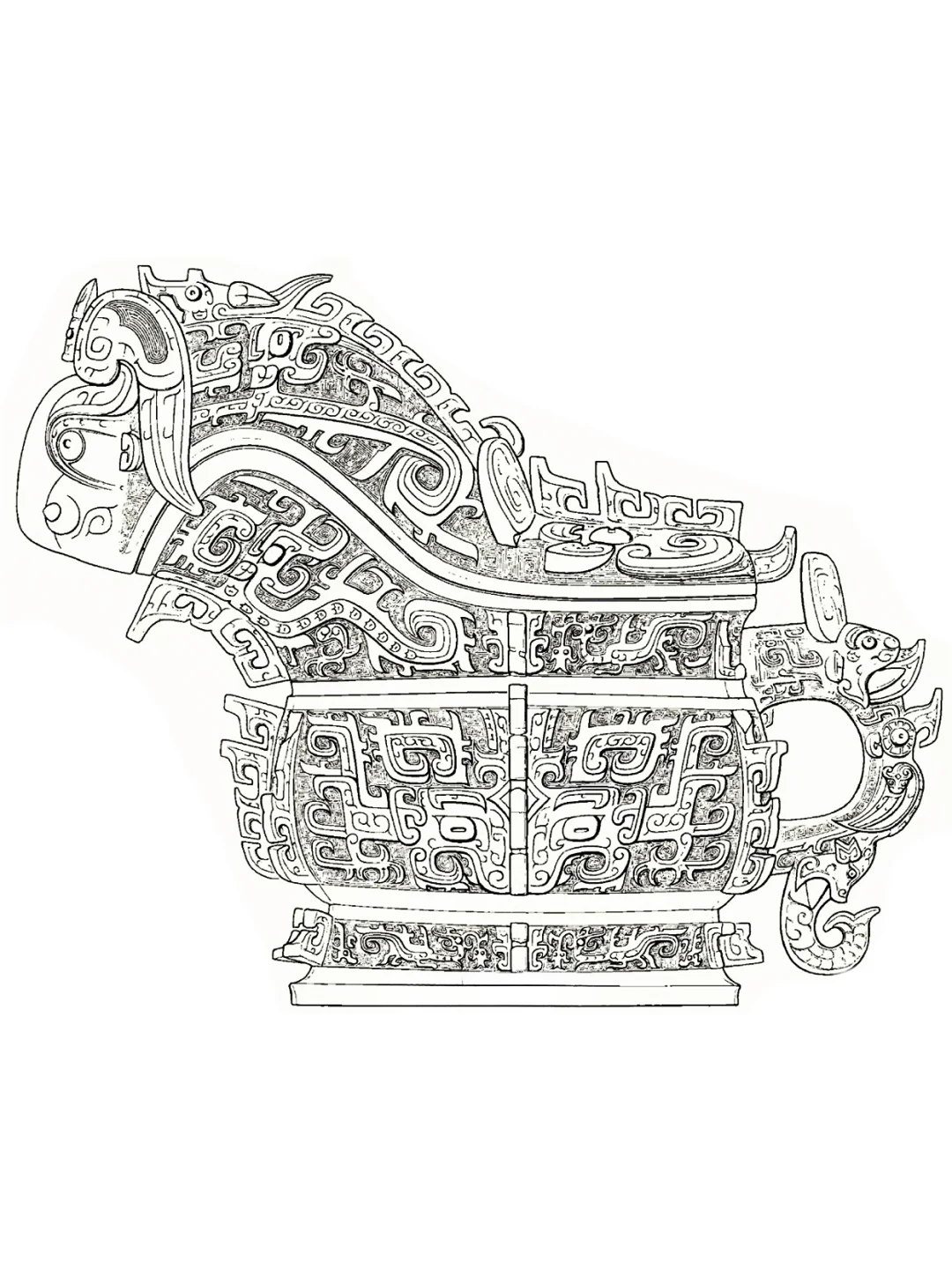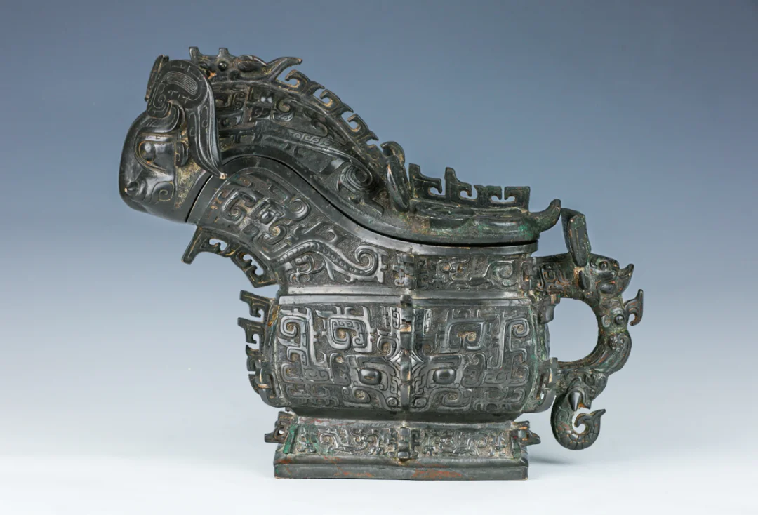 图一、西周早期折觥,器腹部为标准的饕餮纹,器颈部标准的夔龙纹。