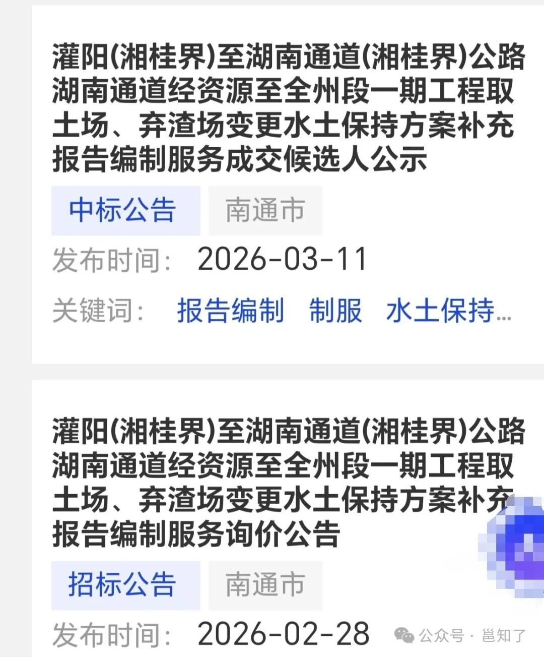 近期,2月份,灌阳(湘桂界)至湖南通道(湘桂界)公路湖南通道经资源至全州段一期工程取土场、弃渣场变更水土保持方案补充报告编制服务询价公告发布。