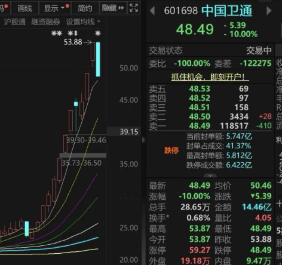 商业航天板块集体走弱 中国卫通跌停。 什么AIGC GEO,商航一落立马暴露原型,说明大资金在这个位置不太认可这个赛道,不然一鲸落万物生,港股逼空,GEO应该延续强势。可惜走的低于预期,很多怕大盘就此回调不完了。