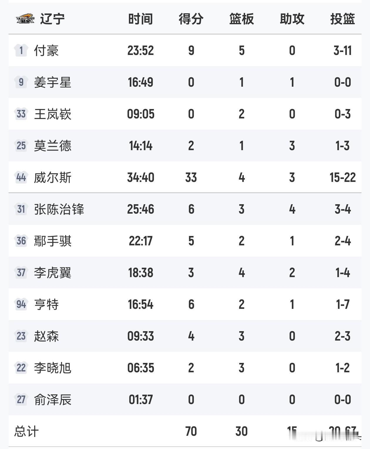 辽宁男篮主场又一轮的两连败,既上一轮大比分不敌广东男篮,本场比赛再次以16分之差不敌青岛男篮,突然发现一个休赛期后辽宁男篮完全不会打球了,防守各种漏人尤其外线防守,给了对手太多空位机会了,虽然今天威尔斯仍然高效得到到了33分4篮板3助攻的全面数据,但是也出现了高达6次的失误,辽宁男篮全队失误本场比赛高达12次,投篮全队63投仅29中,三分球更是惨不忍睹15次出手仅有3次命中,看着赵继伟在场下迷茫的眼神,以及威尔斯拼到最后时刻下场用毛巾包住头部,也许威尔斯也没有想明白,为什么自己已经拿了33分,自己的队友没有一个能够站出来给自己分担一下压力,一个休赛期真的不知道球队都在练什么了,战术没有,投篮准星没有,罚球也不进,以上问题是个人问题,那么传球失误那么多次原因是什么,威尔斯手帝之间的传球失误,两个人不是新队友了,再有新外援亨特,看场上比赛应该好久没有打比赛了,没有激情没有硬解能力,关键什么都没有还不拼,莫兰德的运动能力下滑的好多,感觉辽宁男篮现在不是能力问题,完全是态度问题,场上队员王岚嵚,付豪,姜宇星,威尔斯,单拿出来在任何一个球队都能拿个10分以上,但是为什么在辽宁男篮就怎么投都不进呢,不能专项教练三分自己罚球啊,在摆烂现场球迷都没有了,但是今天球队唯一的好的就是给了年轻队员更多的出场时间,包括张陈治锋的25分钟,李虎翼的18分钟赵森的9分钟,今天也许他们三个也发挥不好,但是他们三个的防守积极性是现在这支辽宁男篮真正缺少的,希望下一场继续给予他们更多的时间以及机会。